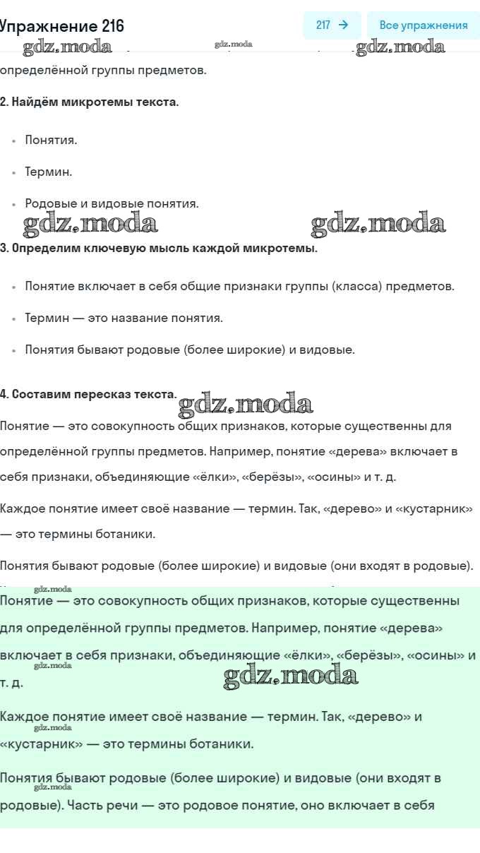 ОТВЕТ на задание № 216 Учебник по Русскому языку 6 класс Разумовская Вертикаль