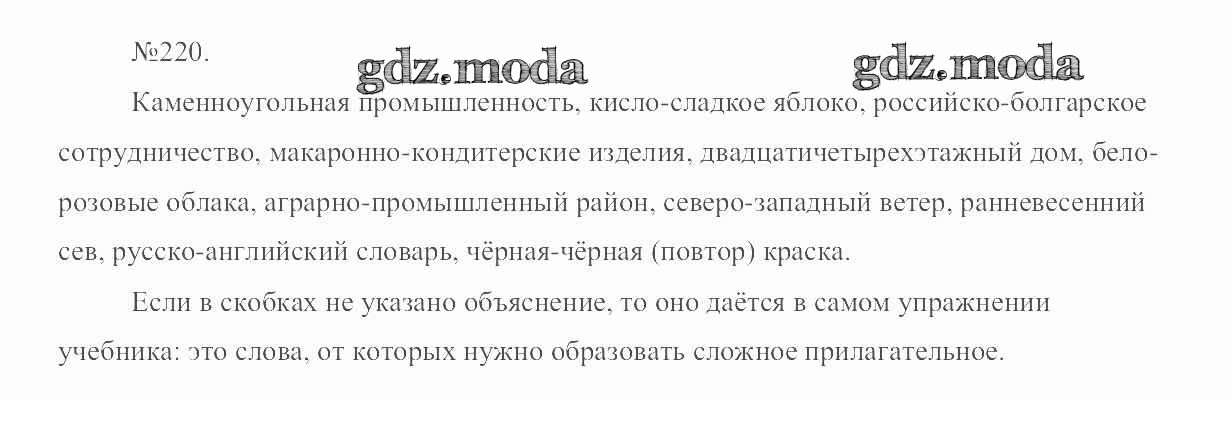 ОТВЕТ на задание № 220 Учебник по Русскому языку 6 класс Разумовская Вертикаль