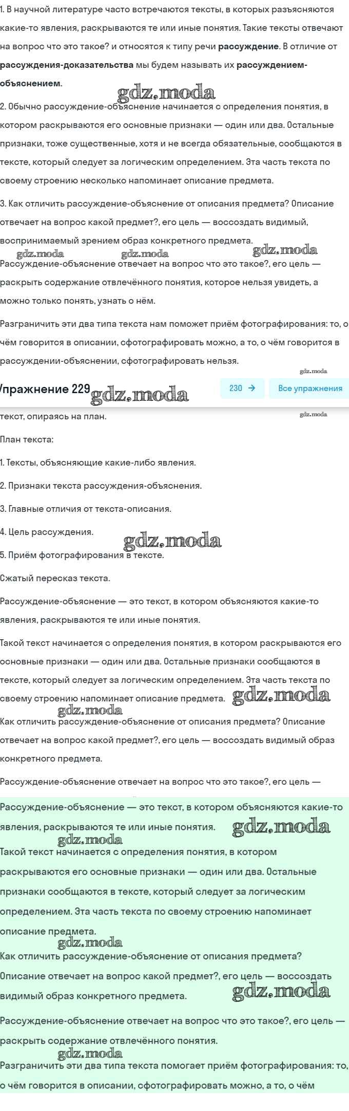 ОТВЕТ на задание № 229 Учебник по Русскому языку 6 класс Разумовская Вертикаль