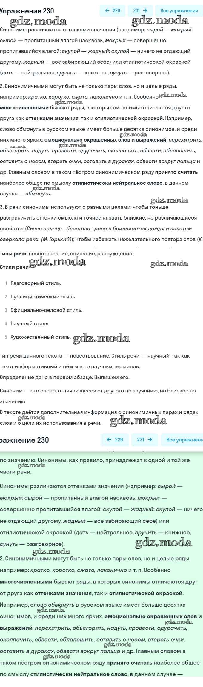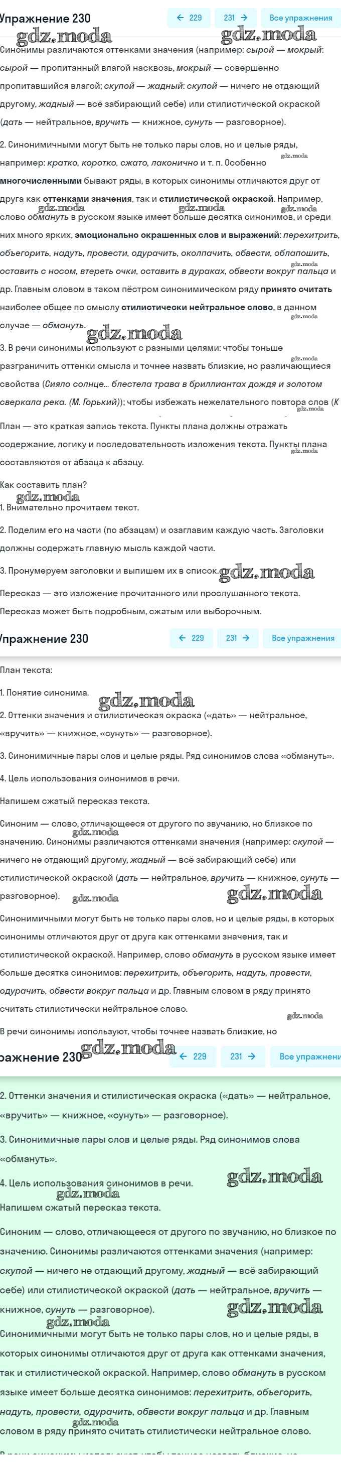 ОТВЕТ на задание № 230 Учебник по Русскому языку 6 класс Разумовская Вертикаль