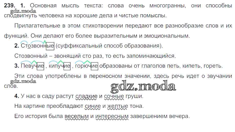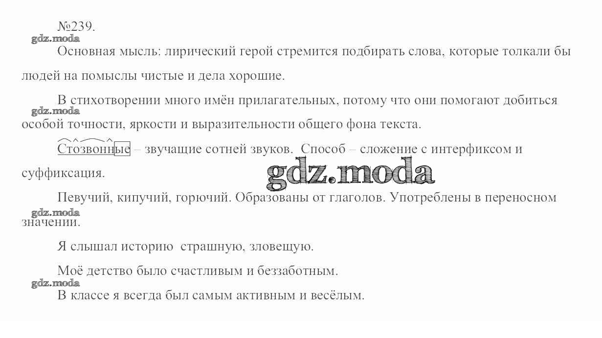 ОТВЕТ на задание № 239 Учебник по Русскому языку 6 класс Разумовская Вертикаль