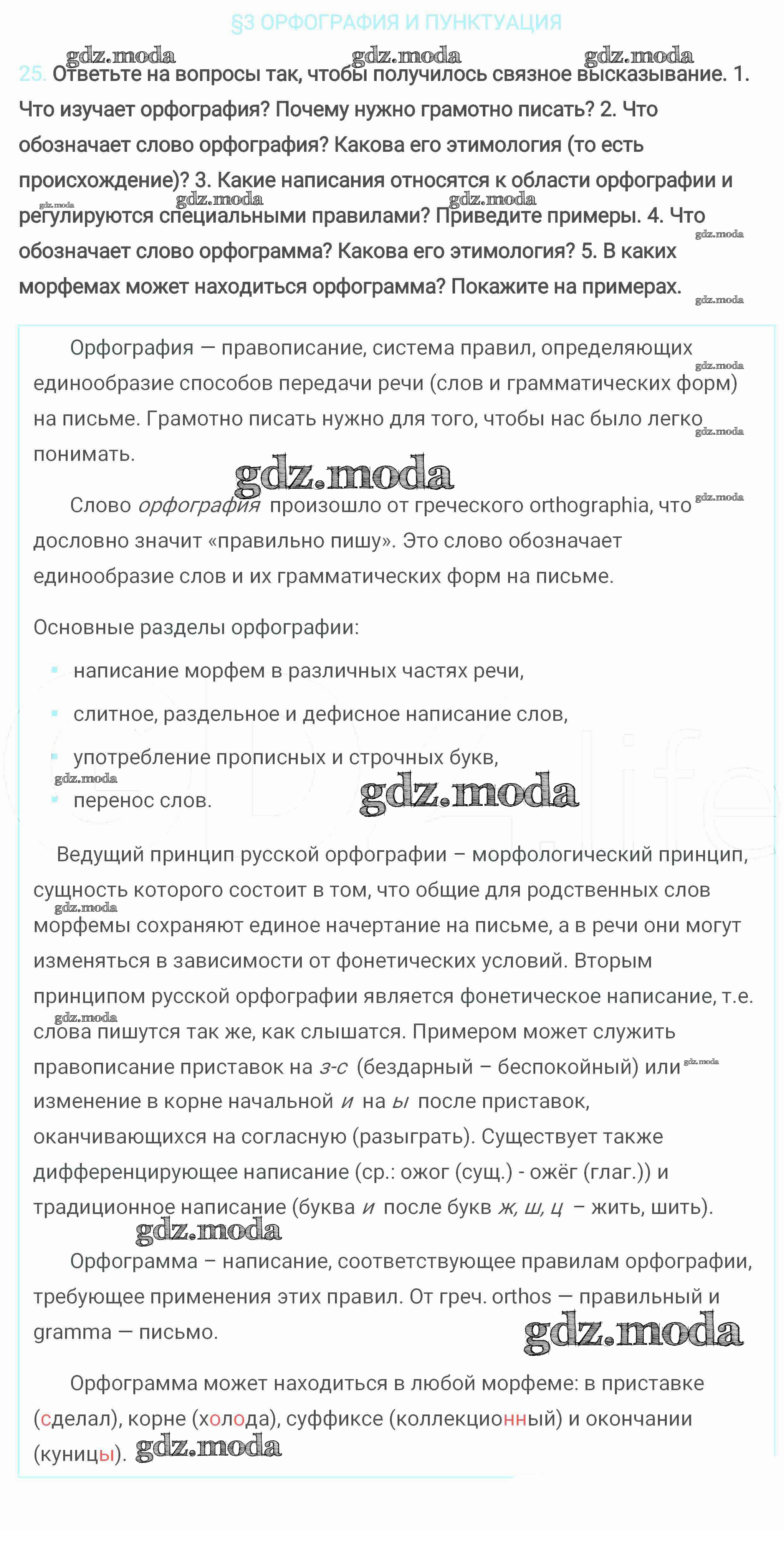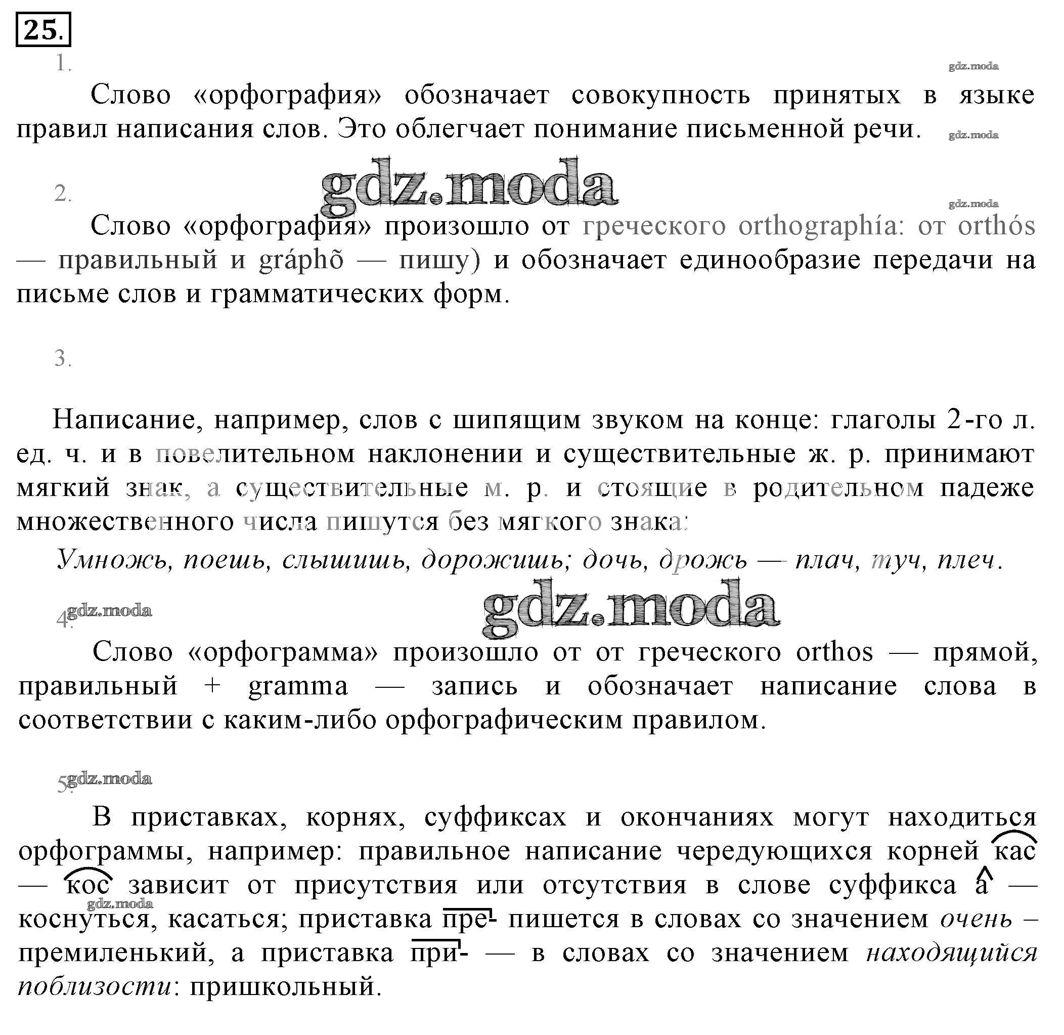 ОТВЕТ на задание № 25 Учебник по Русскому языку 6 класс Разумовская Вертикаль
