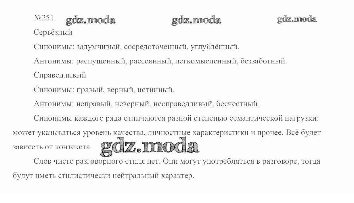 ОТВЕТ на задание № 251 Учебник по Русскому языку 6 класс Разумовская Вертикаль