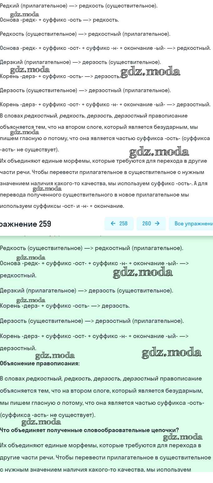 ОТВЕТ на задание № 259 Учебник по Русскому языку 6 класс Разумовская Вертикаль