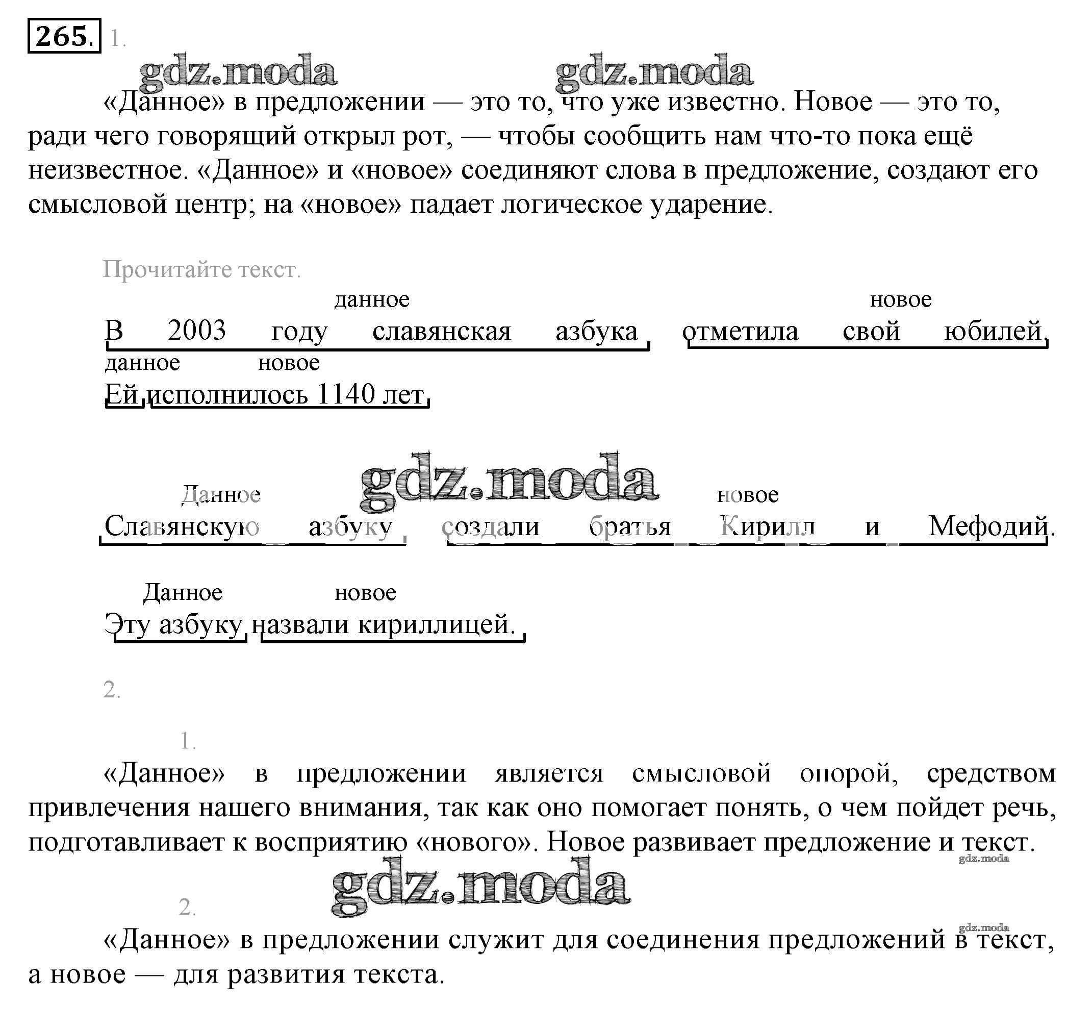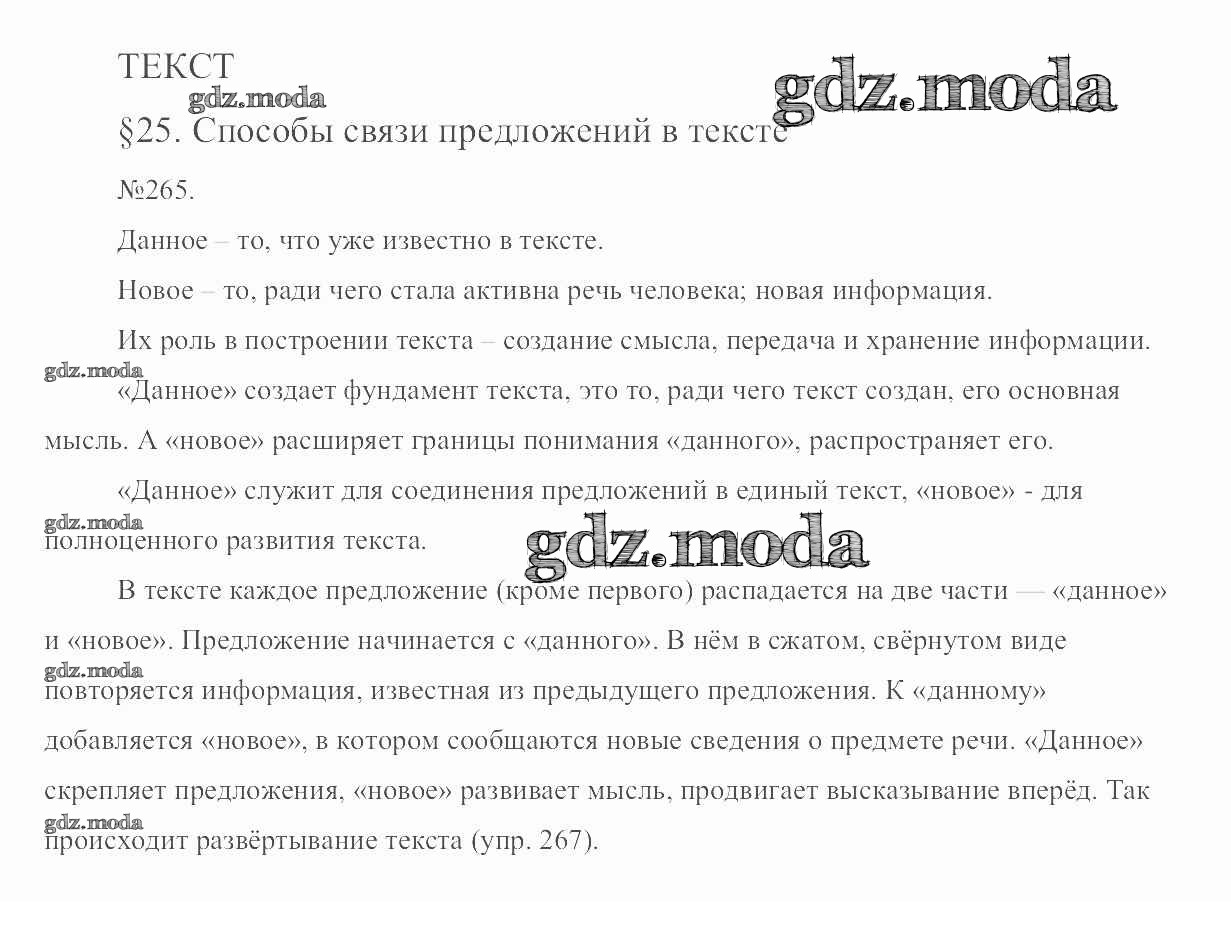 ОТВЕТ на задание № 265 Учебник по Русскому языку 6 класс Разумовская Вертикаль
