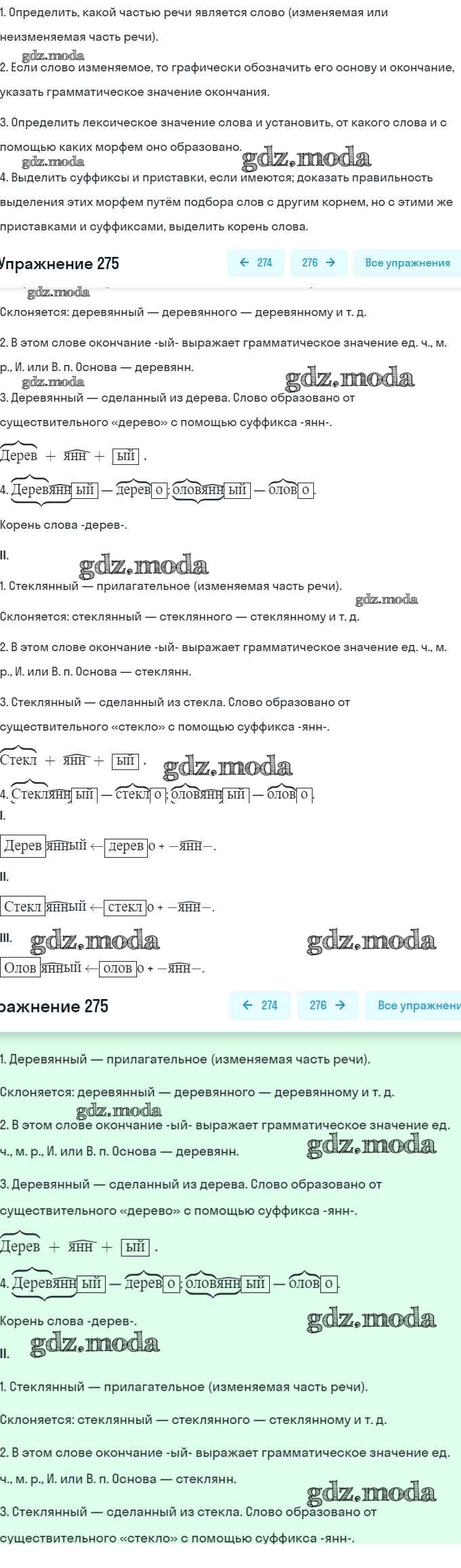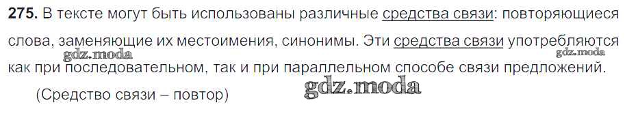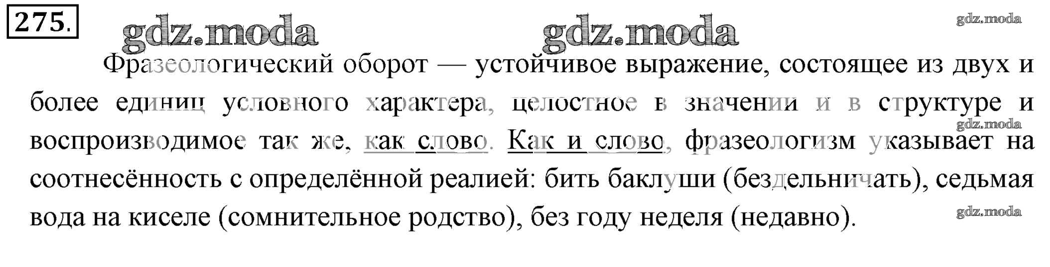 ОТВЕТ на задание № 275 Учебник по Русскому языку 6 класс Разумовская Вертикаль