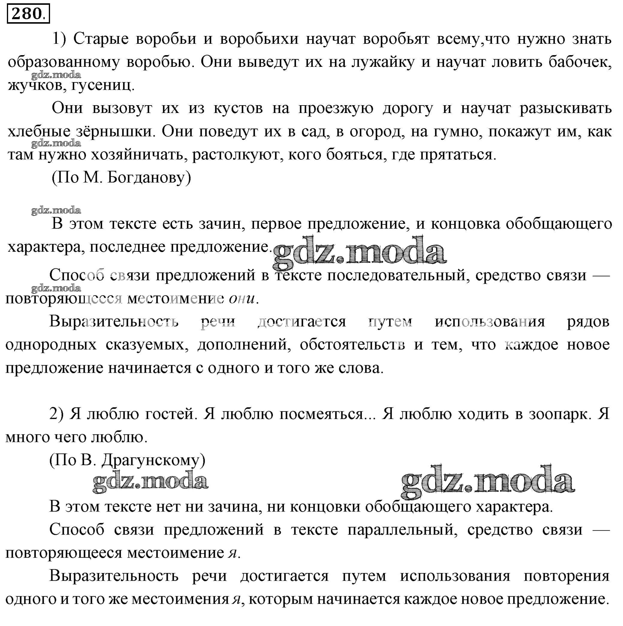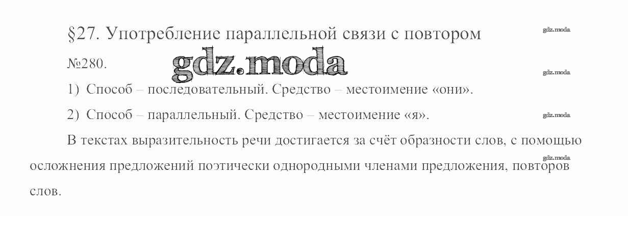 ОТВЕТ на задание № 280 Учебник по Русскому языку 6 класс Разумовская Вертикаль