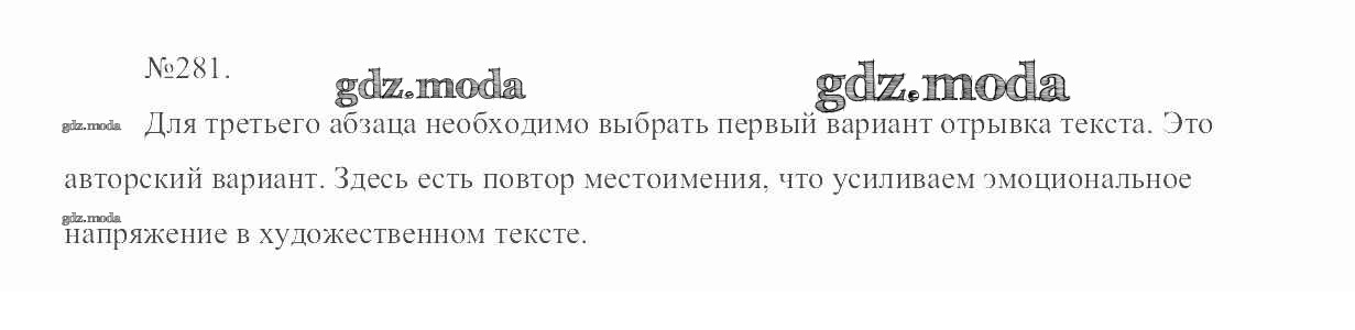 ОТВЕТ на задание № 281 Учебник по Русскому языку 6 класс Разумовская Вертикаль