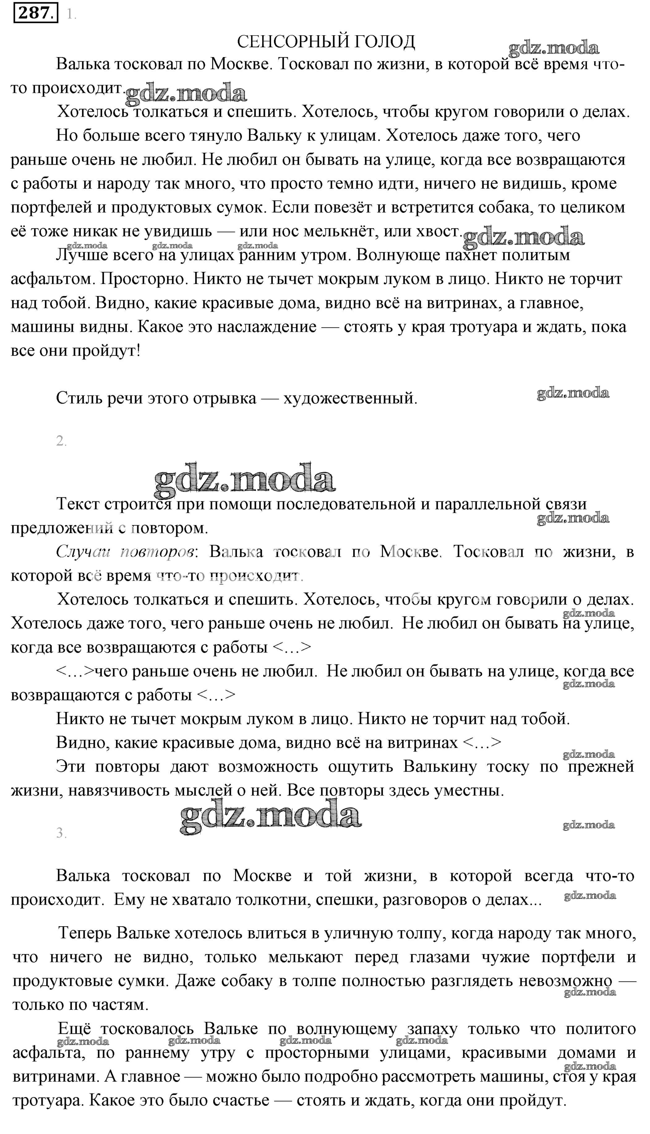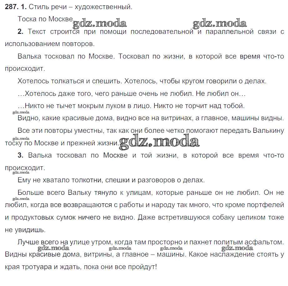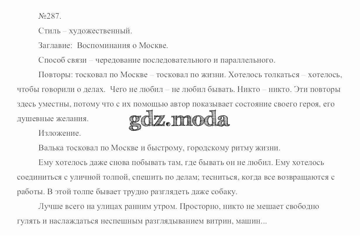 ОТВЕТ на задание № 287 Учебник по Русскому языку 6 класс Разумовская Вертикаль