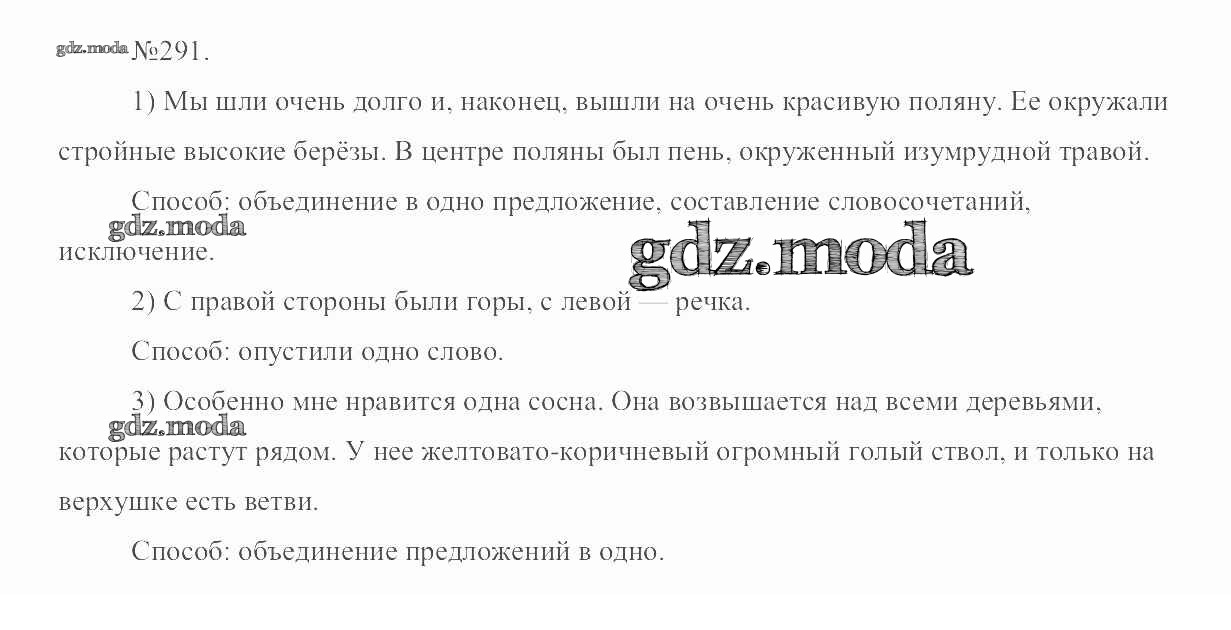 ОТВЕТ на задание № 291 Учебник по Русскому языку 6 класс Разумовская Вертикаль