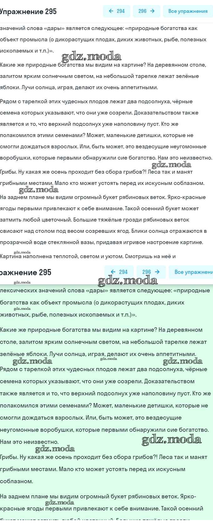 ОТВЕТ на задание № 295 Учебник по Русскому языку 6 класс Разумовская Вертикаль