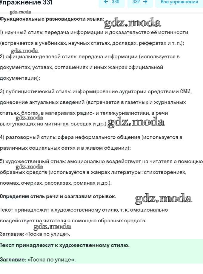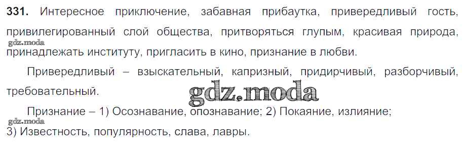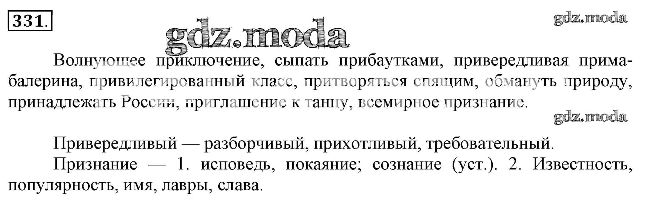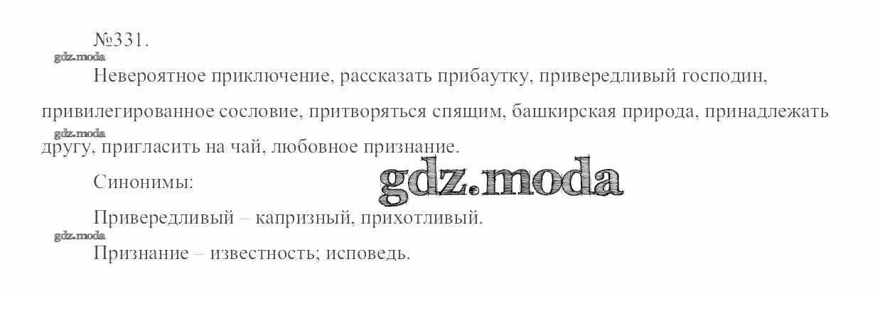 ОТВЕТ на задание № 331 Учебник по Русскому языку 6 класс Разумовская Вертикаль
