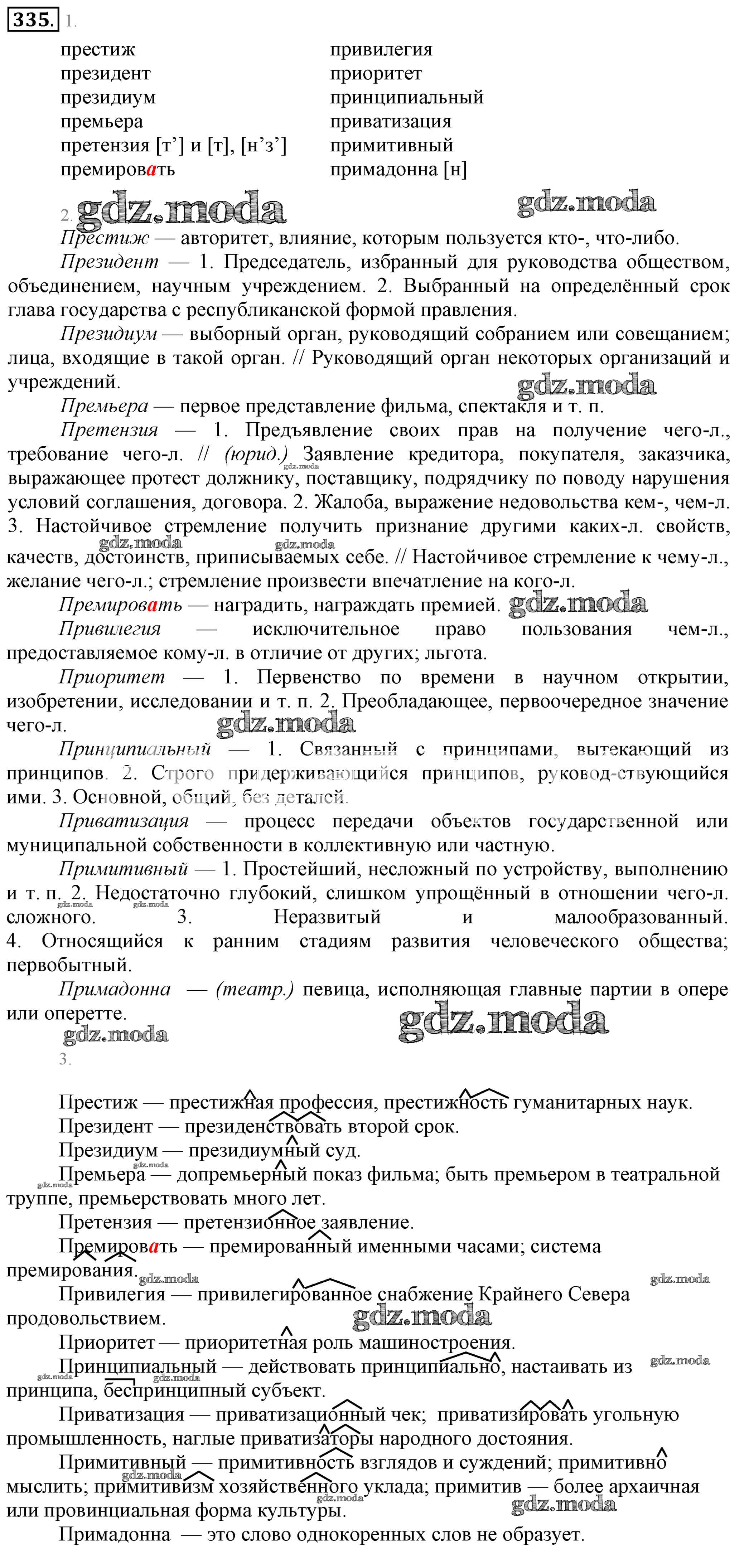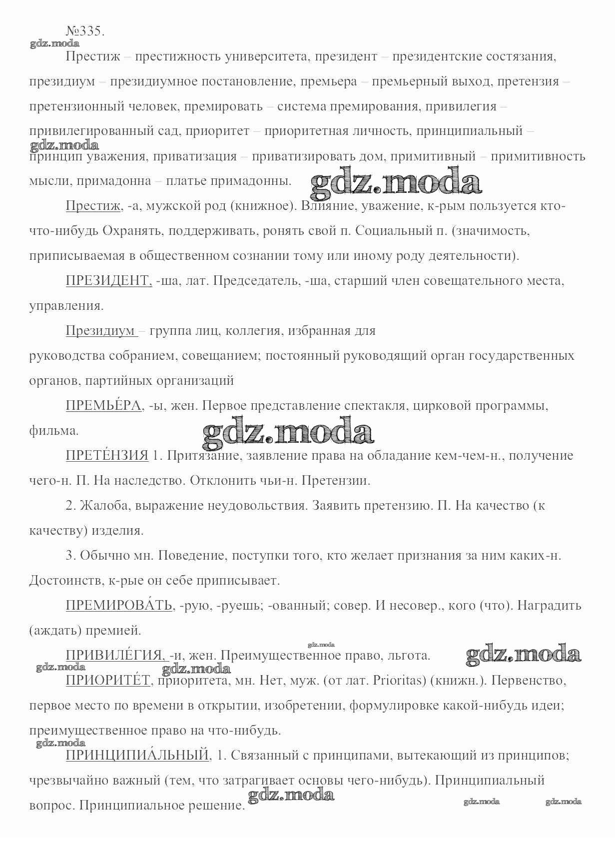 ОТВЕТ на задание № 335 Учебник по Русскому языку 6 класс Разумовская Вертикаль