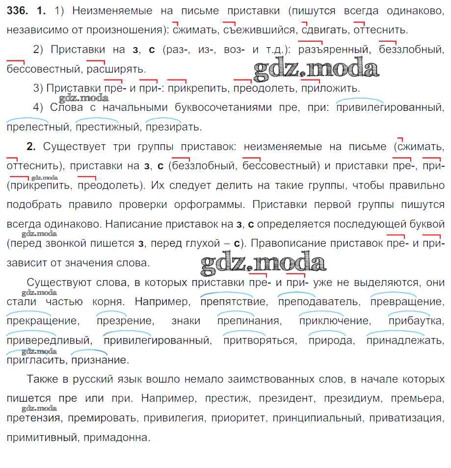 ОТВЕТ на задание № 336 Учебник по Русскому языку 6 класс Разумовская Вертикаль
