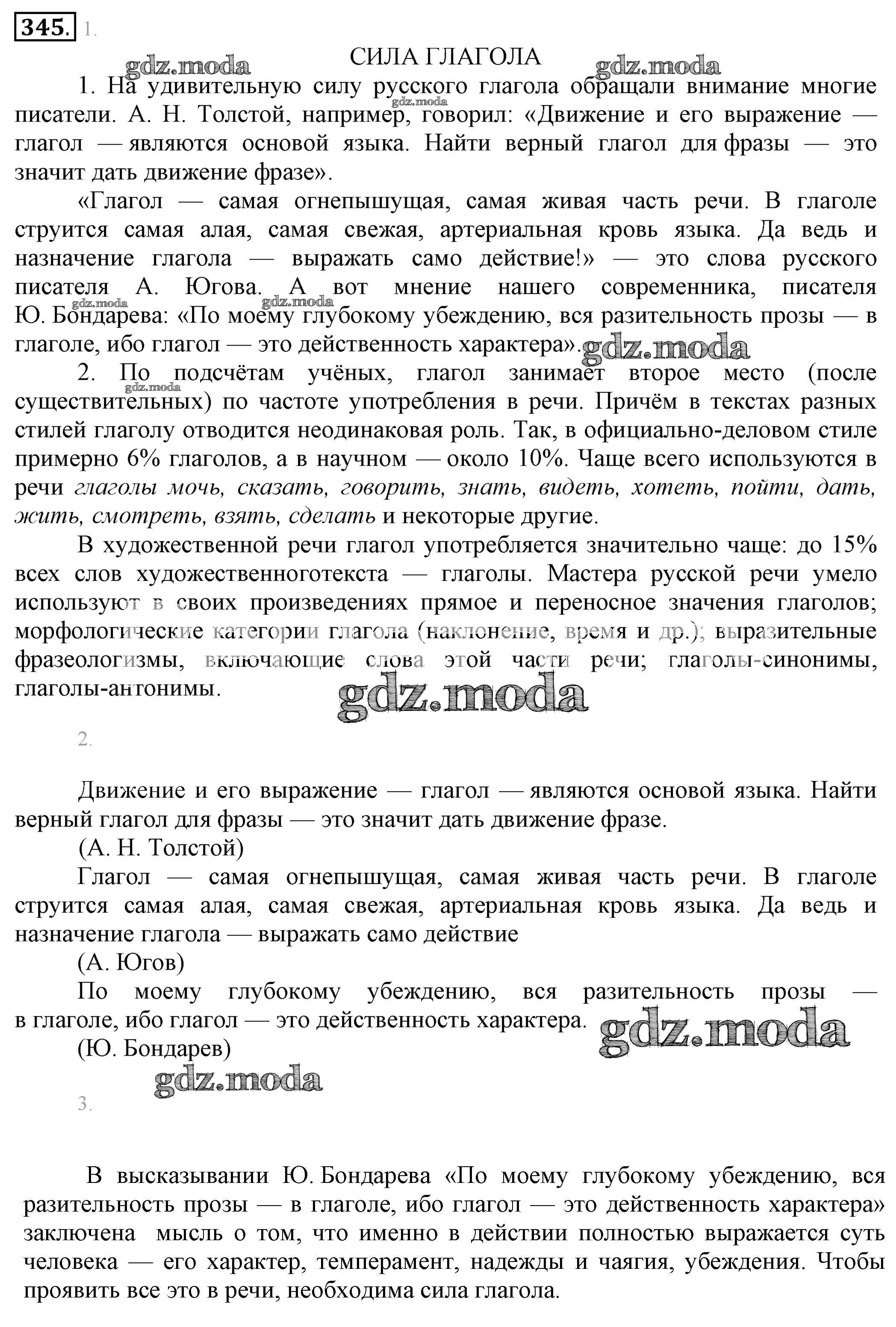 ОТВЕТ на задание № 345 Учебник по Русскому языку 6 класс Разумовская Вертикаль