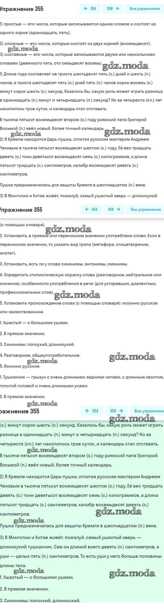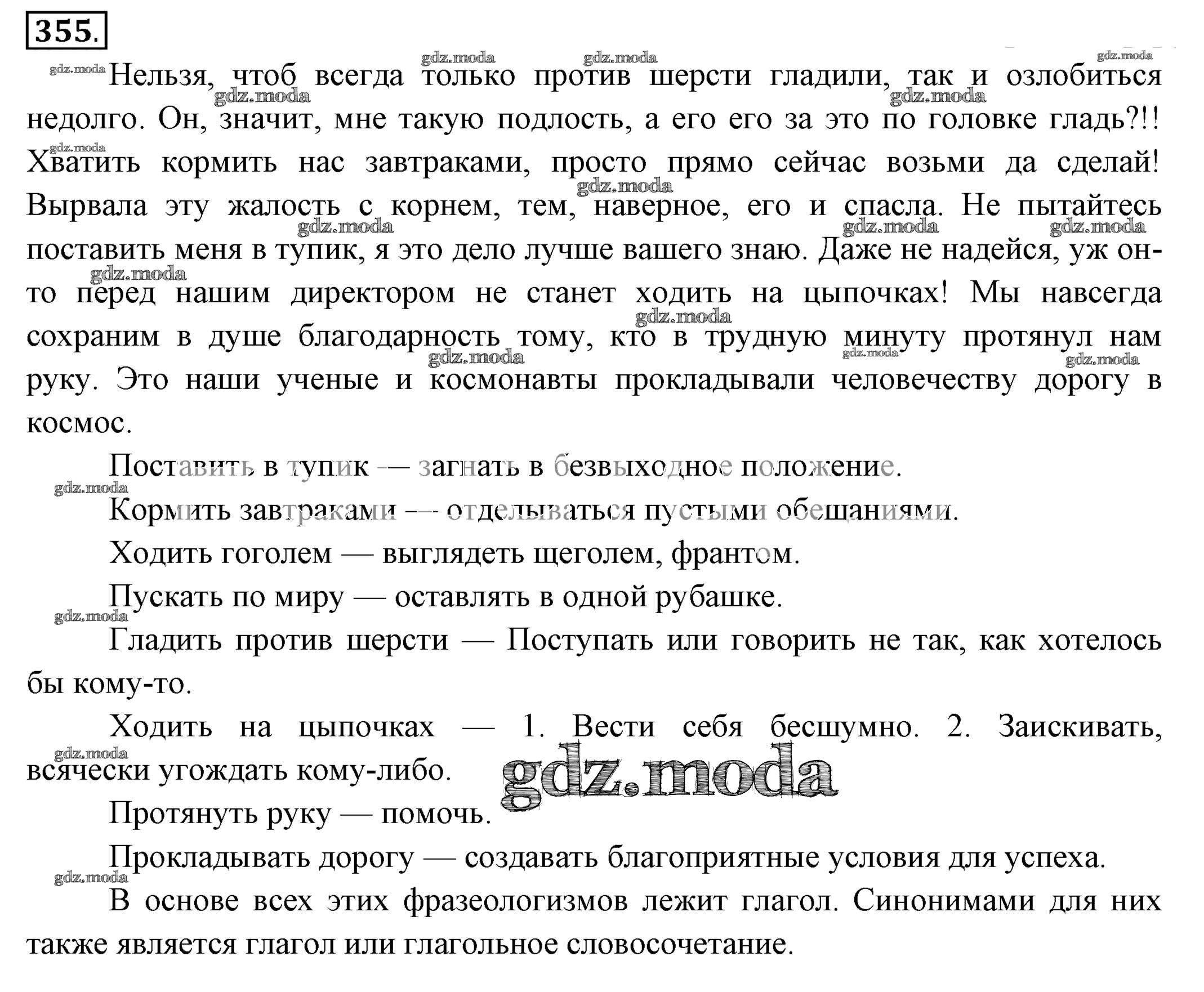 ОТВЕТ на задание № 355 Учебник по Русскому языку 6 класс Разумовская Вертикаль