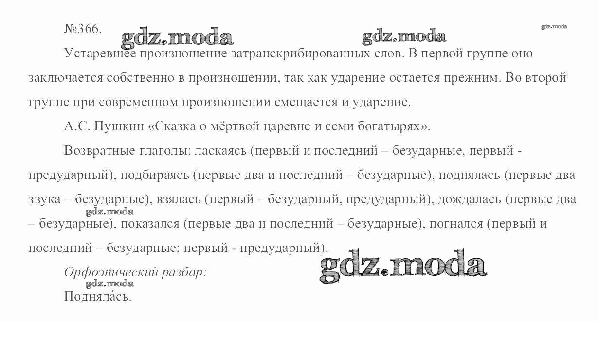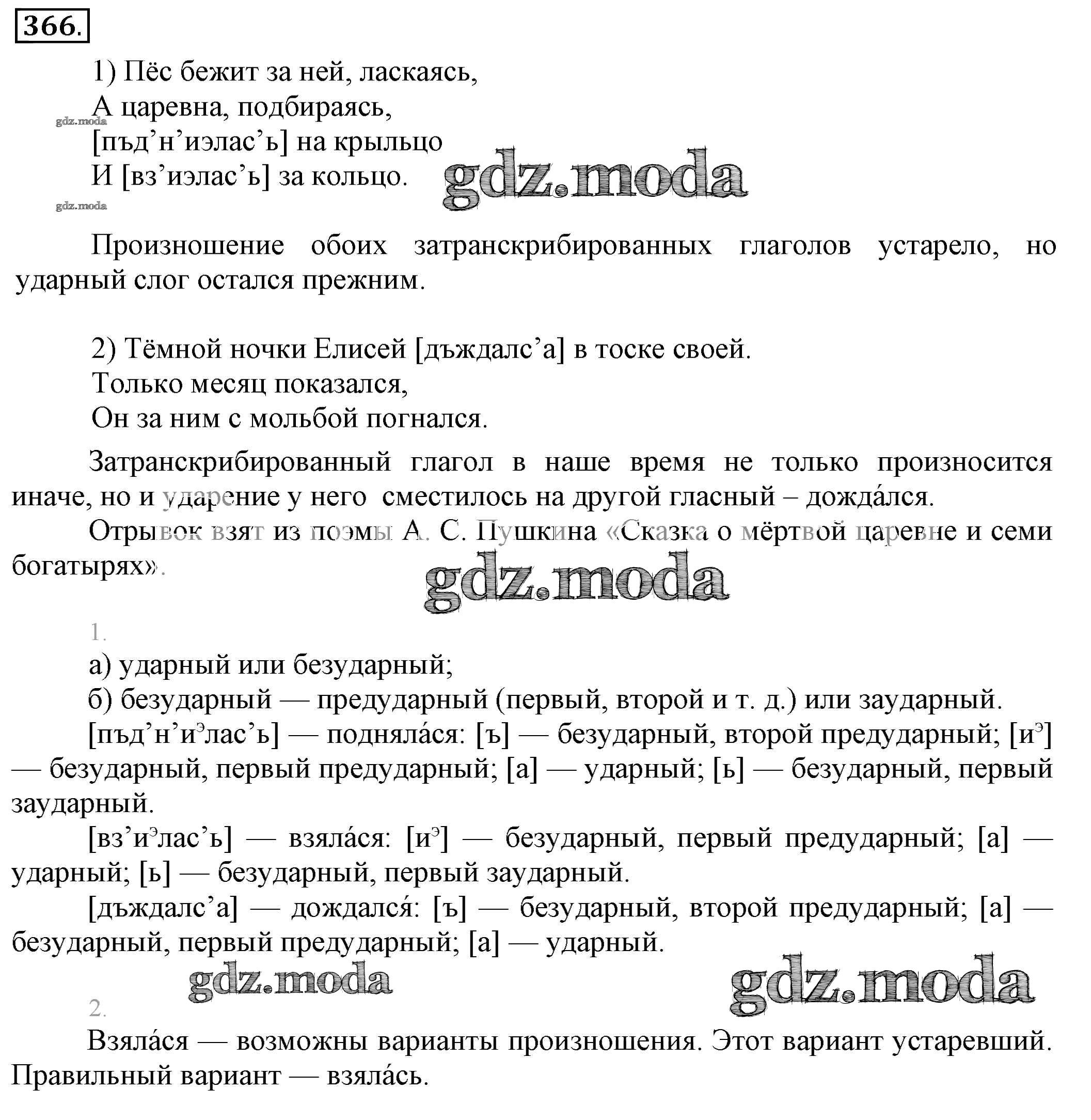 ОТВЕТ на задание № 366 Учебник по Русскому языку 6 класс Разумовская Вертикаль