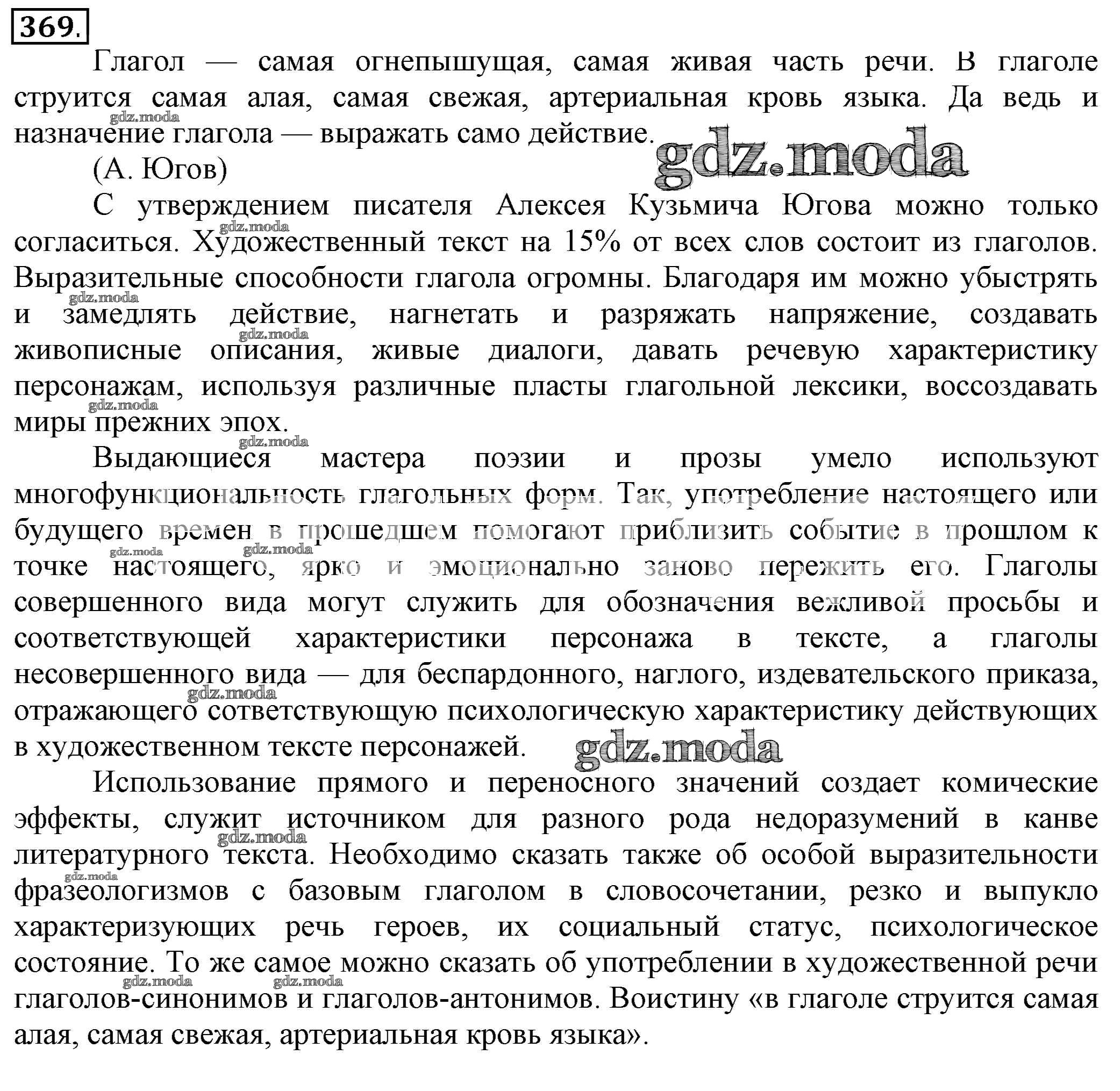 ОТВЕТ на задание № 369 Учебник по Русскому языку 6 класс Разумовская Вертикаль