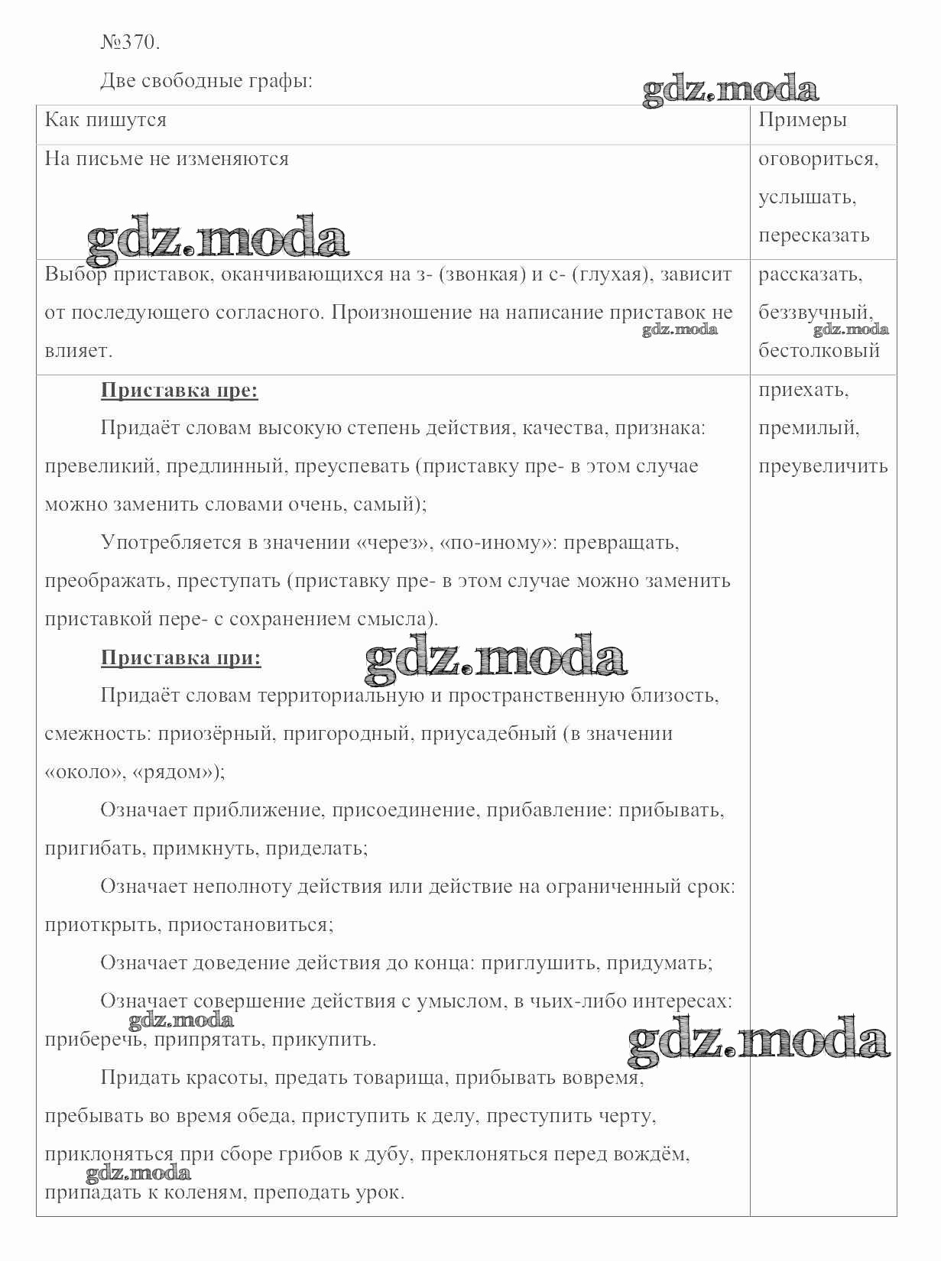 ОТВЕТ на задание № 370 Учебник по Русскому языку 6 класс Разумовская Вертикаль