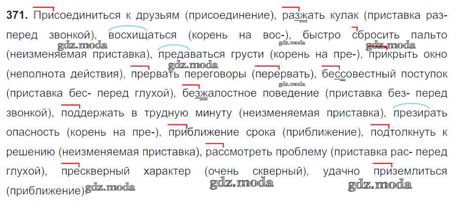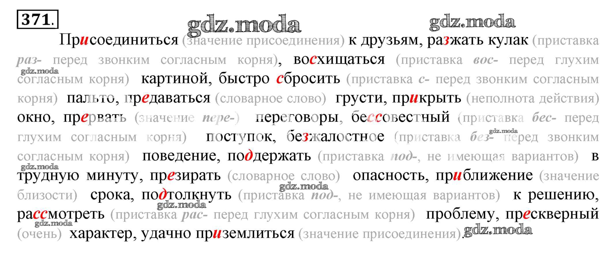 ОТВЕТ на задание № 371 Учебник по Русскому языку 6 класс Разумовская Вертикаль