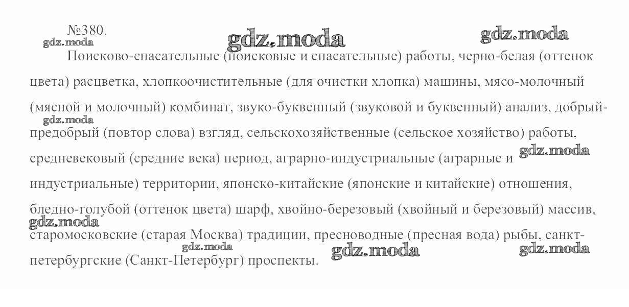 ОТВЕТ на задание № 380 Учебник по Русскому языку 6 класс Разумовская Вертикаль