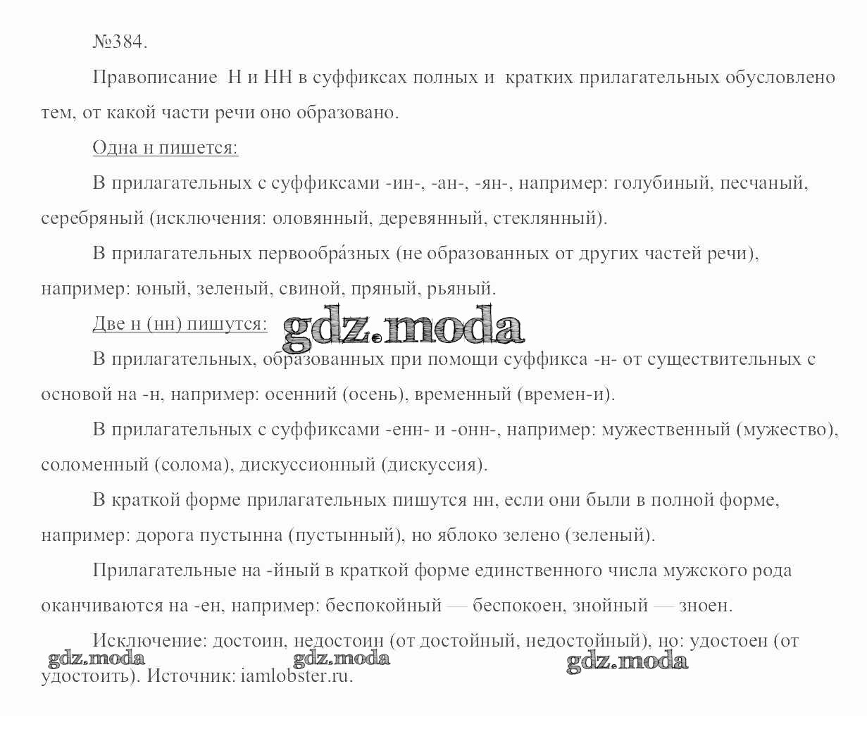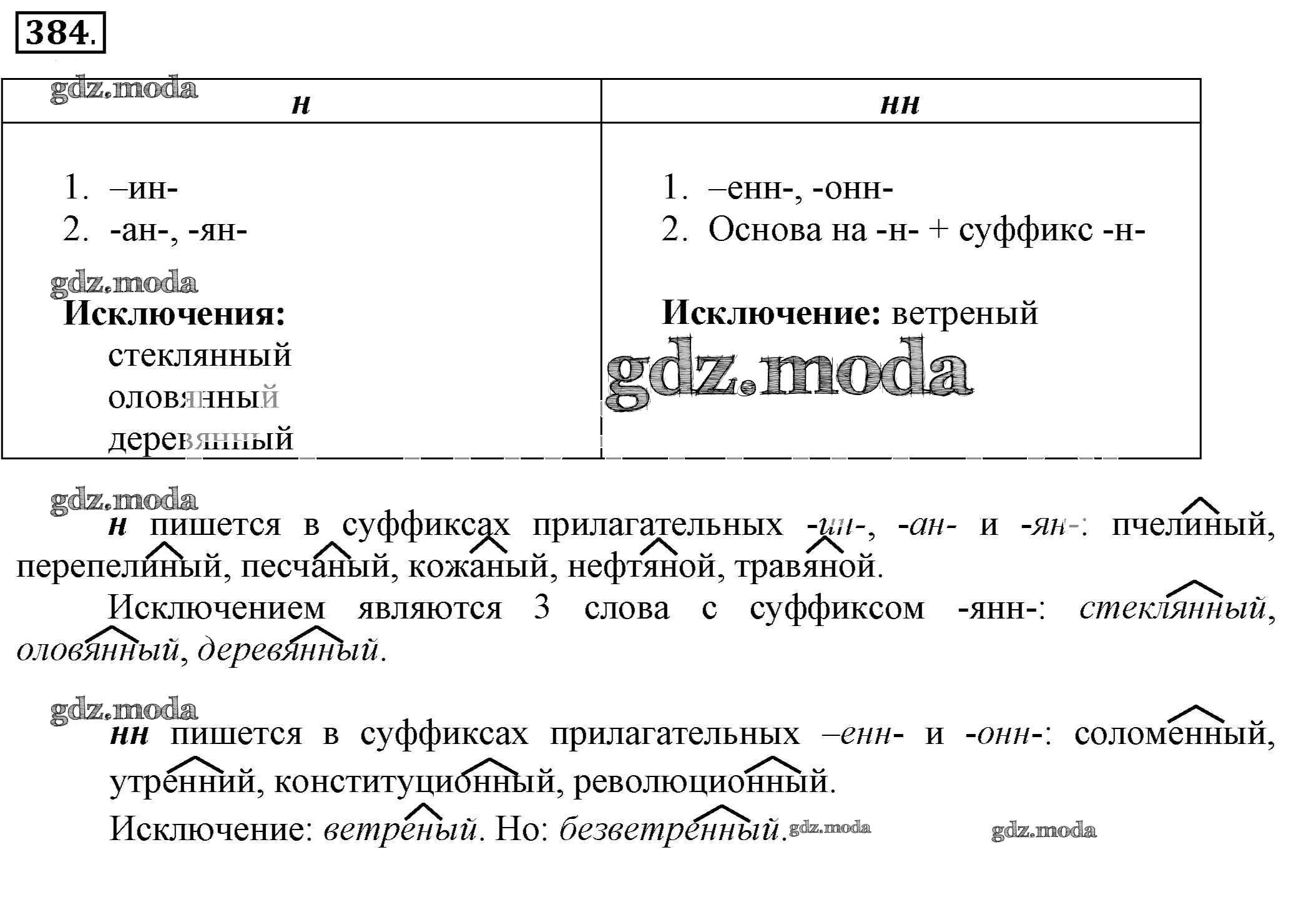 ОТВЕТ на задание № 384 Учебник по Русскому языку 6 класс Разумовская Вертикаль