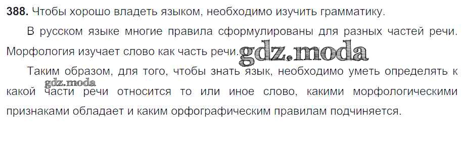 ОТВЕТ на задание № 388 Учебник по Русскому языку 6 класс Разумовская Вертикаль