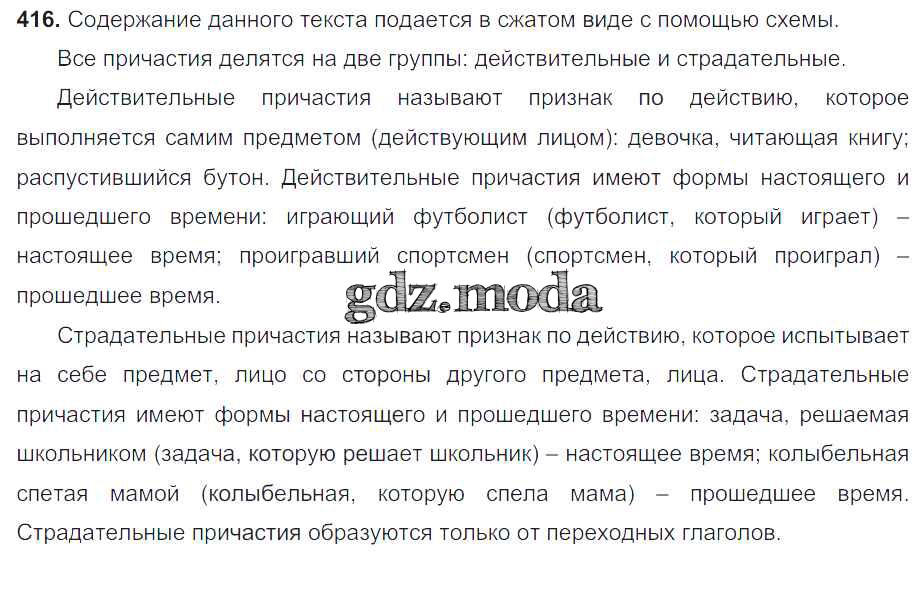 ОТВЕТ на задание № 416 Учебник по Русскому языку 6 класс Разумовская Вертикаль