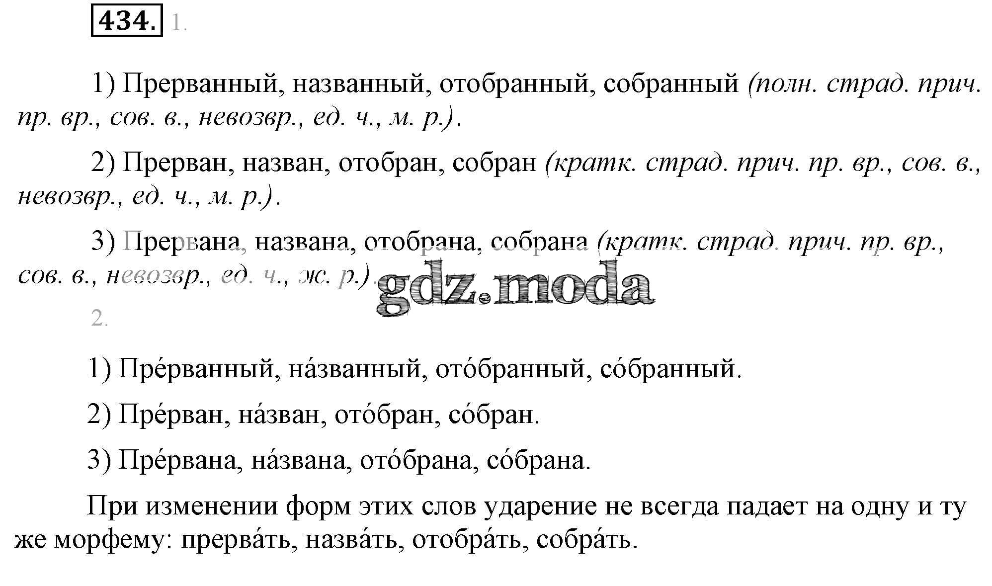 ОТВЕТ на задание № 434 Учебник по Русскому языку 6 класс Разумовская Вертикаль