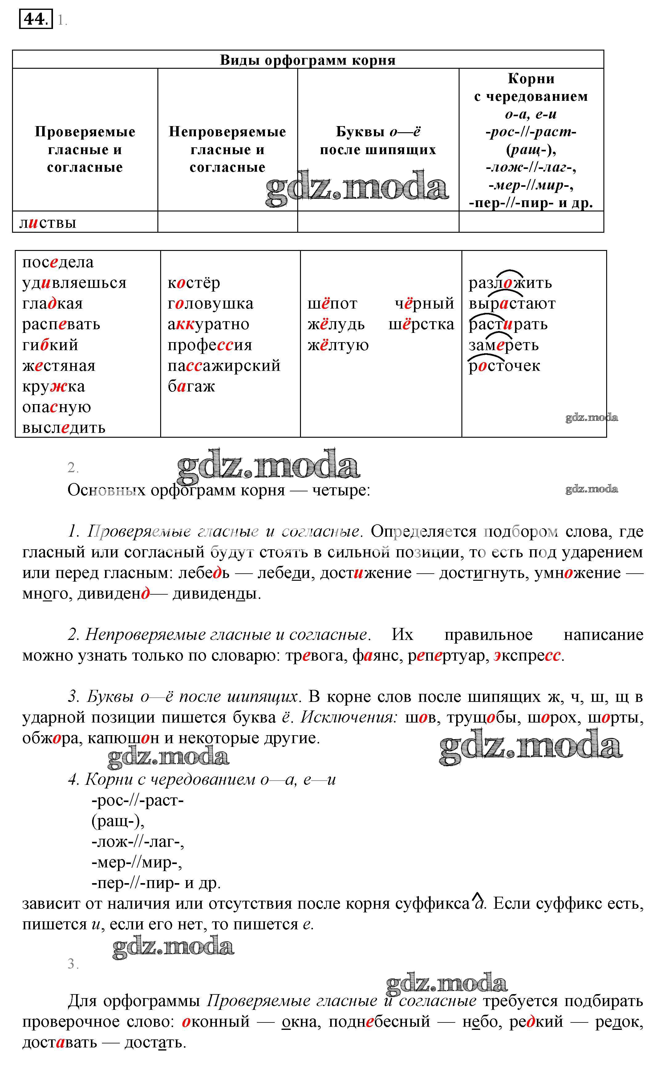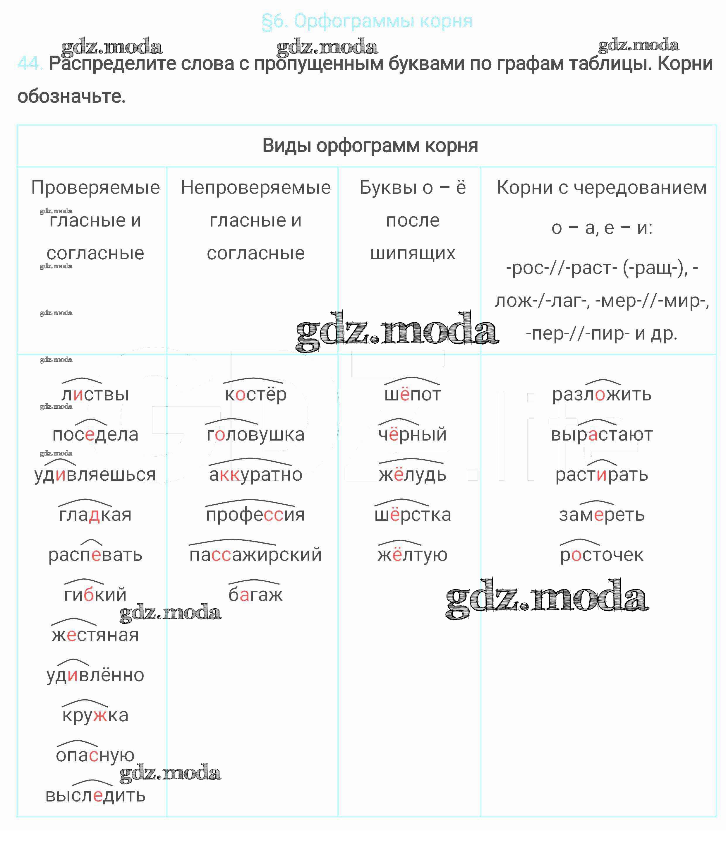 ОТВЕТ на задание № 44 Учебник по Русскому языку 6 класс Разумовская Вертикаль