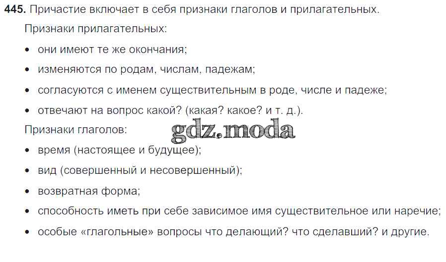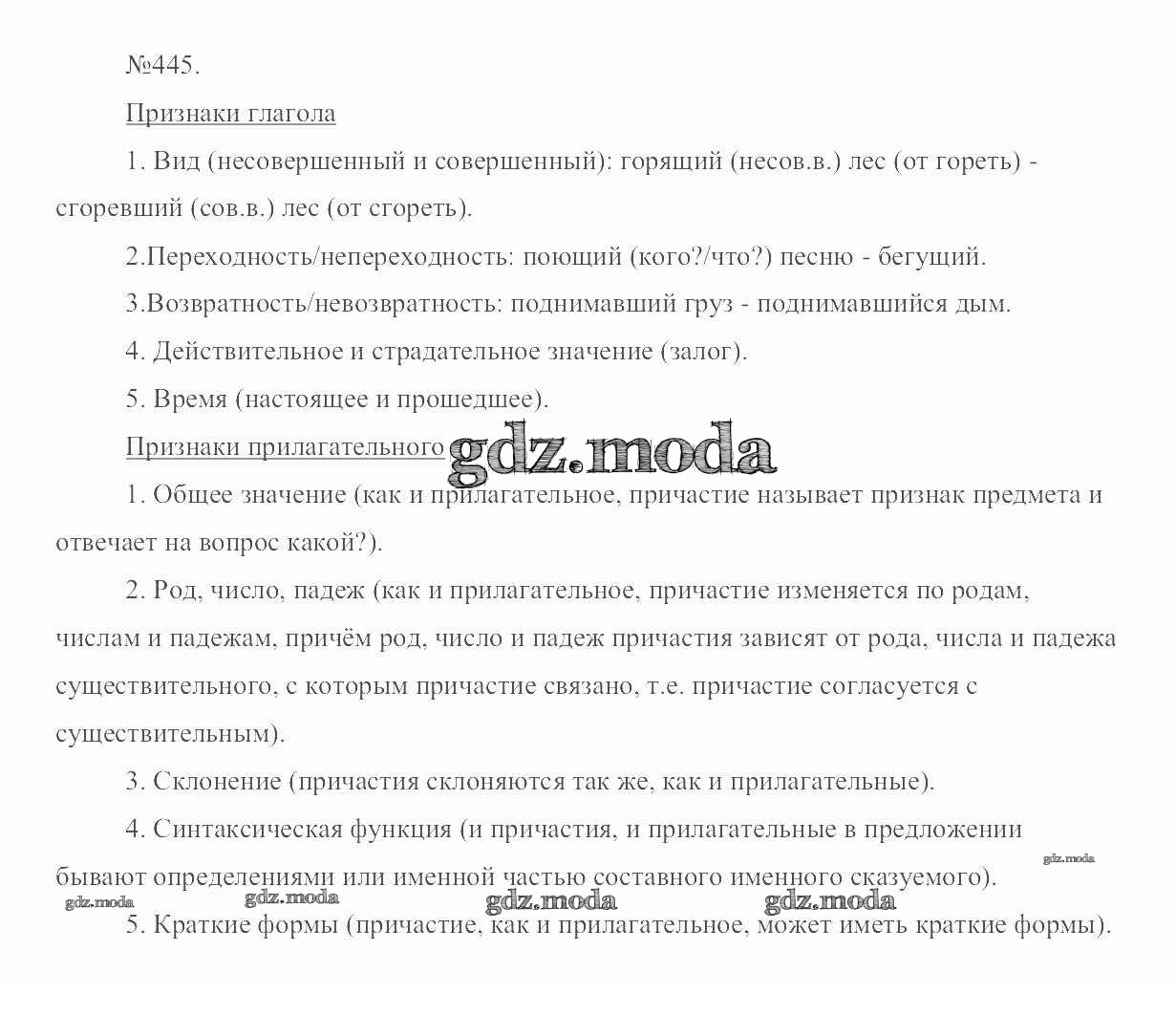ОТВЕТ на задание № 445 Учебник по Русскому языку 6 класс Разумовская Вертикаль