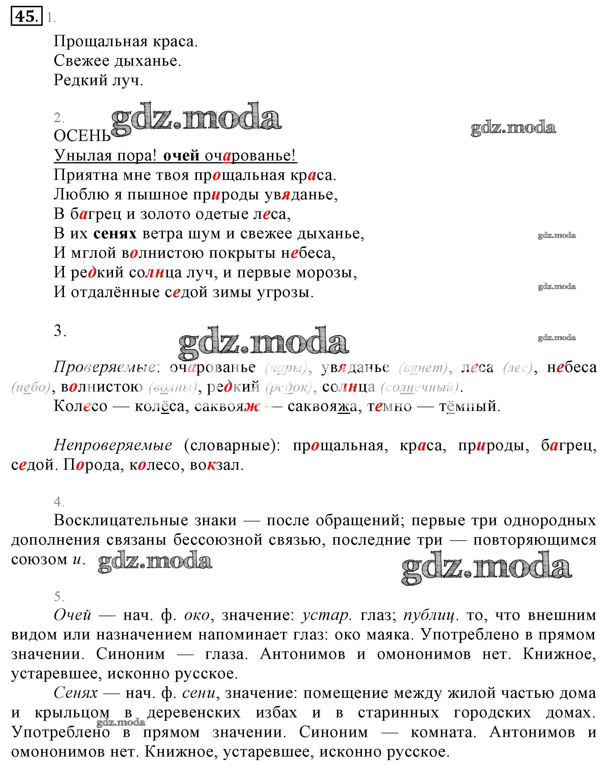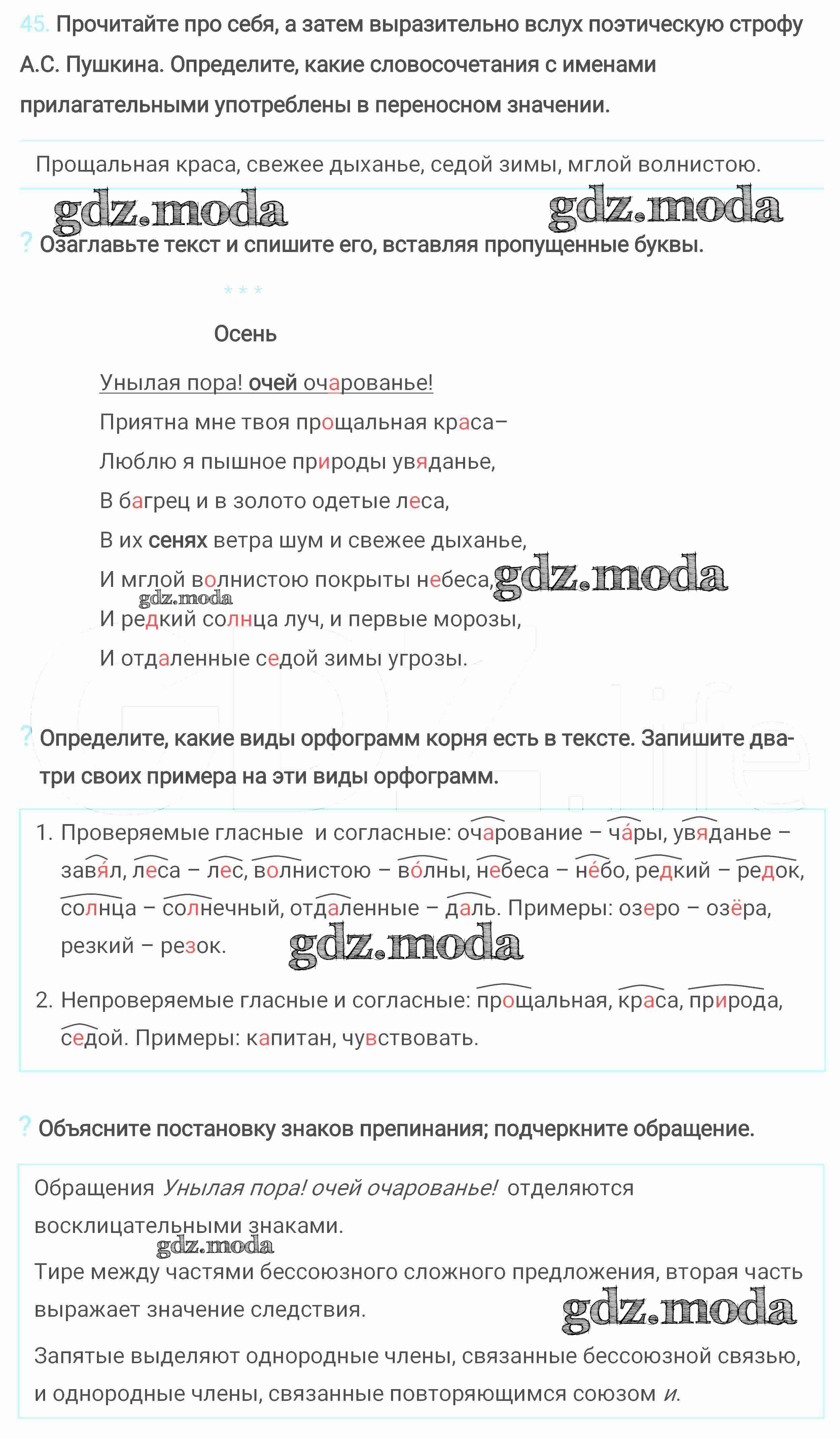 ОТВЕТ на задание № 45 Учебник по Русскому языку 6 класс Разумовская Вертикаль