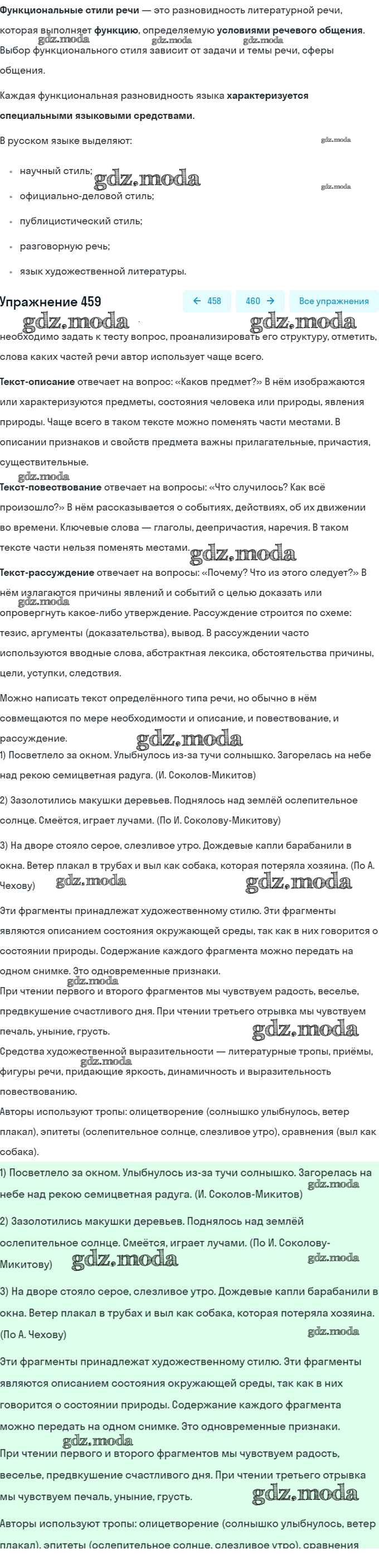 ОТВЕТ на задание № 459 Учебник по Русскому языку 6 класс Разумовская Вертикаль
