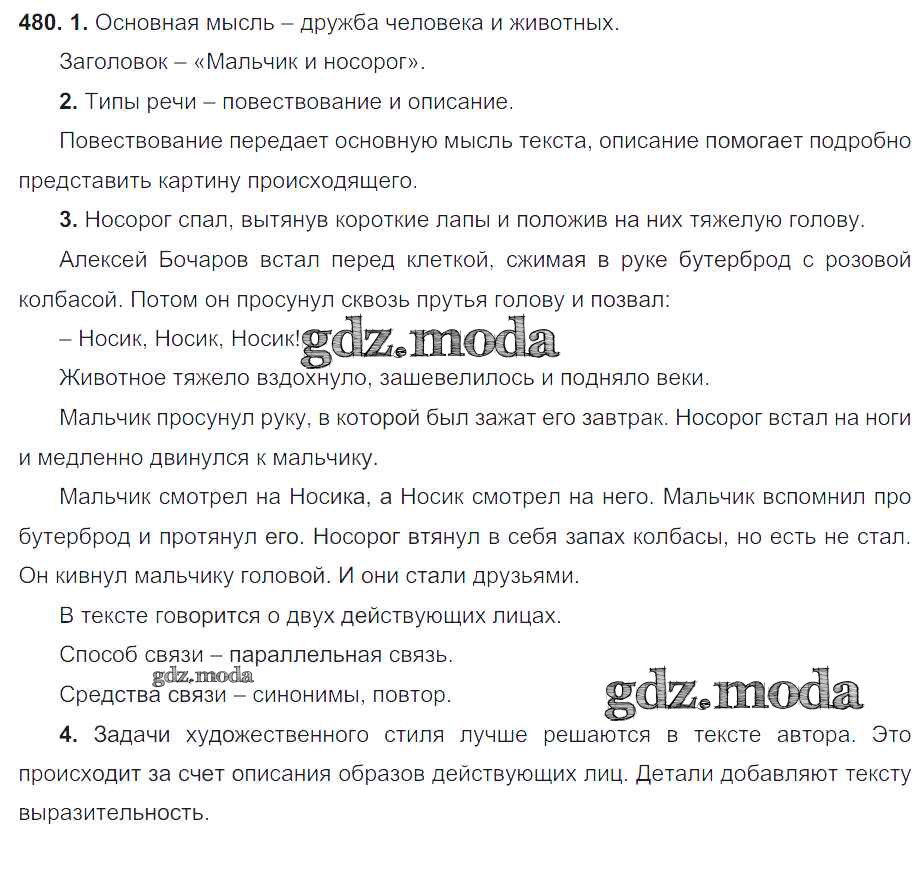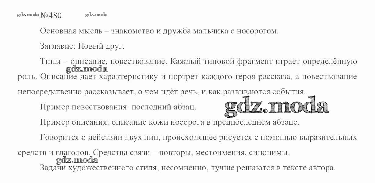 ОТВЕТ на задание № 480 Учебник по Русскому языку 6 класс Разумовская Вертикаль