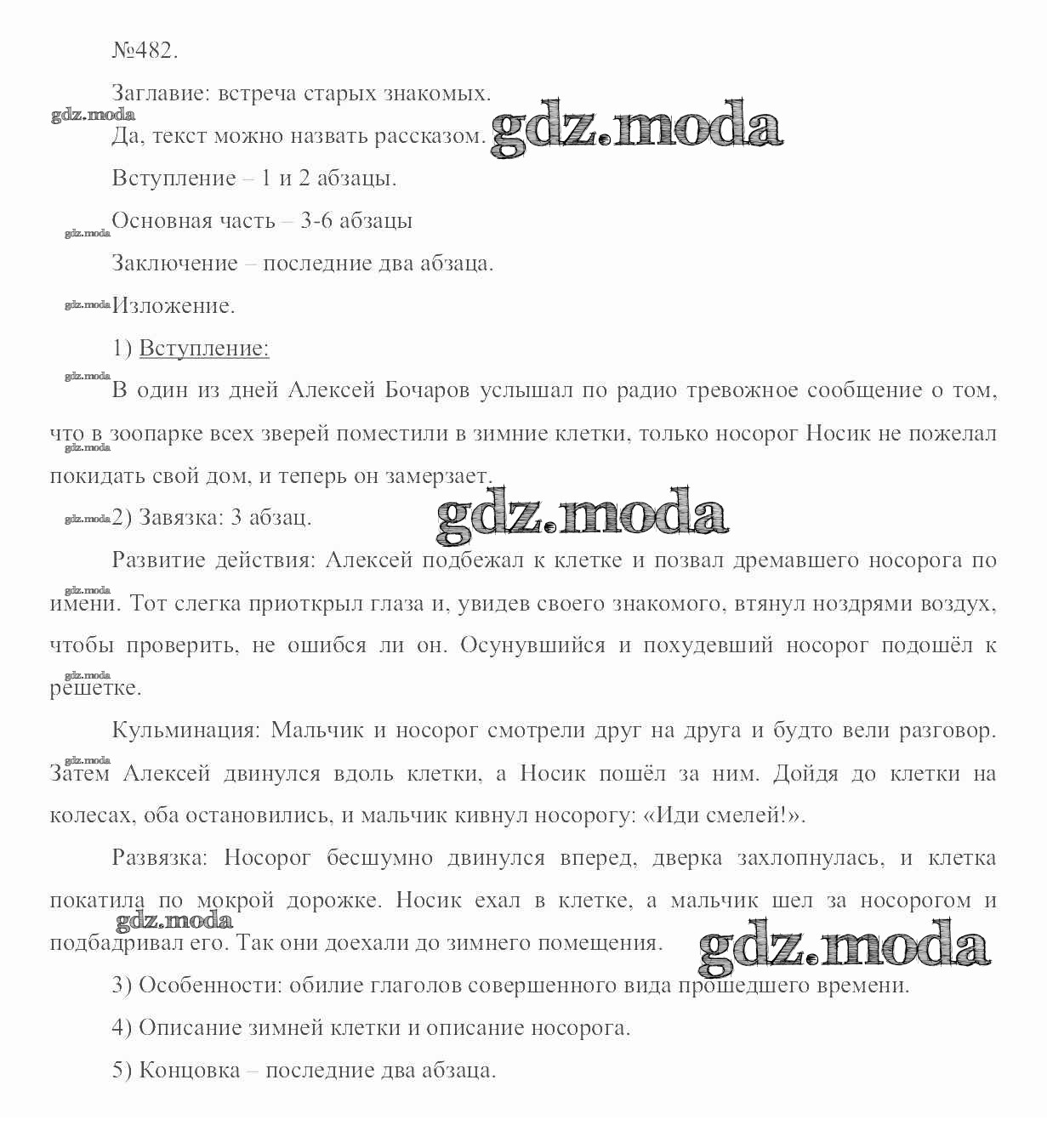 ОТВЕТ на задание № 482 Учебник по Русскому языку 6 класс Разумовская Вертикаль