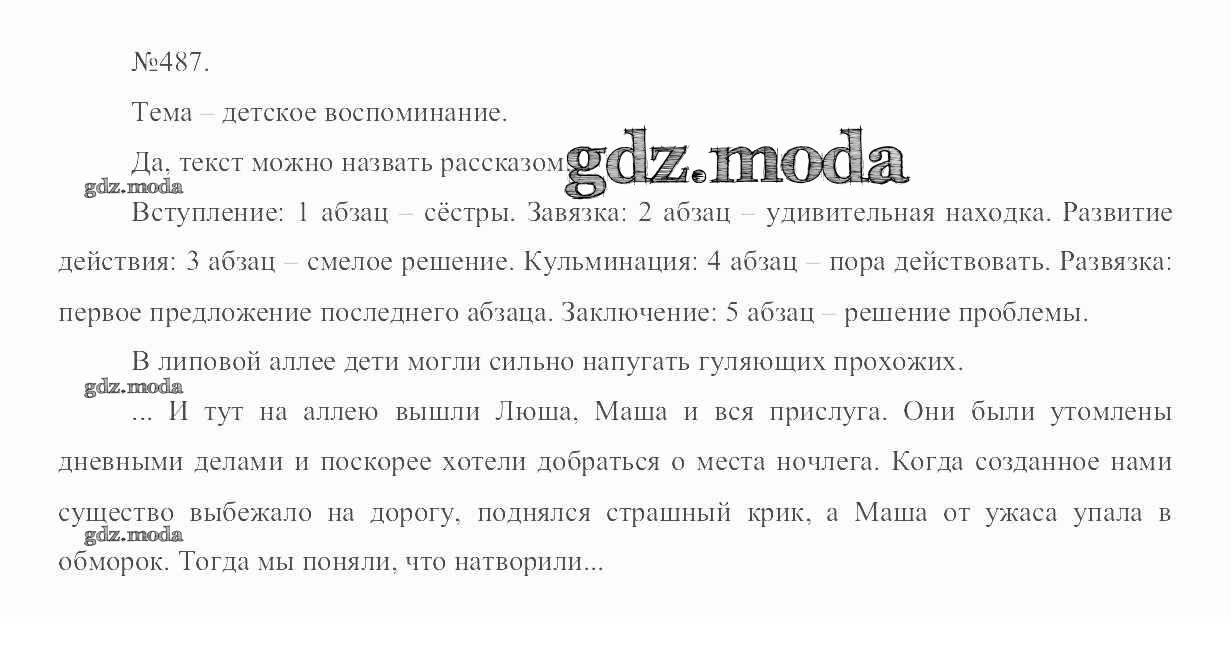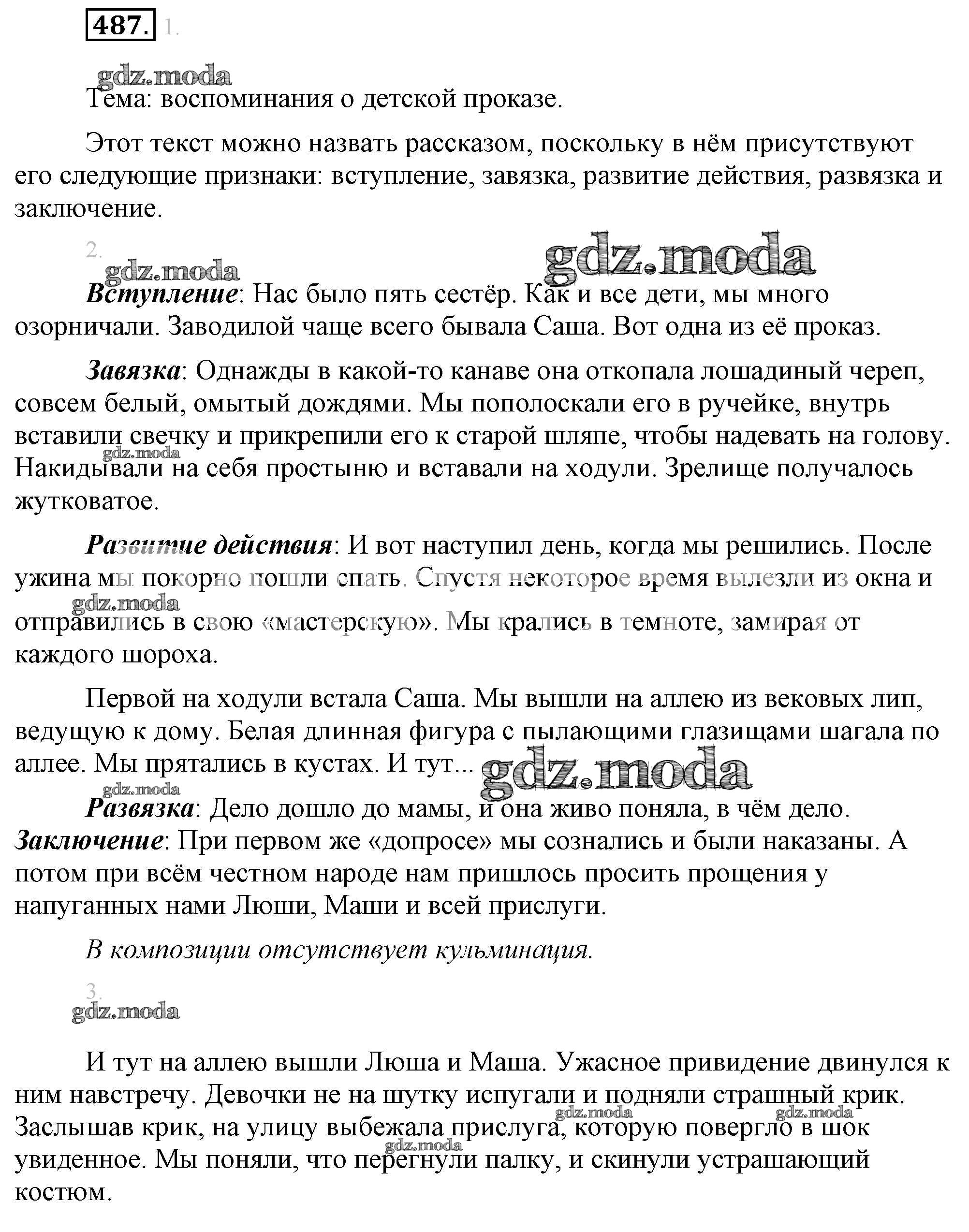 ОТВЕТ на задание № 487 Учебник по Русскому языку 6 класс Разумовская Вертикаль