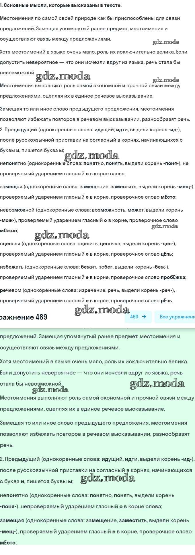ОТВЕТ на задание № 489 Учебник по Русскому языку 6 класс Разумовская Вертикаль