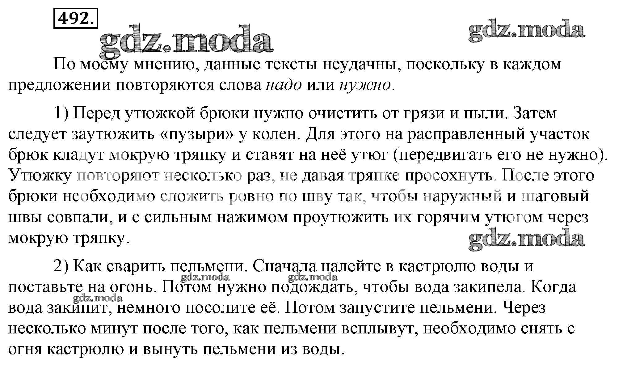 ОТВЕТ на задание № 492 Учебник по Русскому языку 6 класс Разумовская Вертикаль