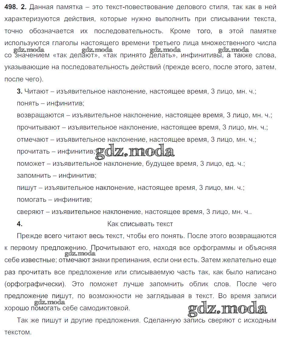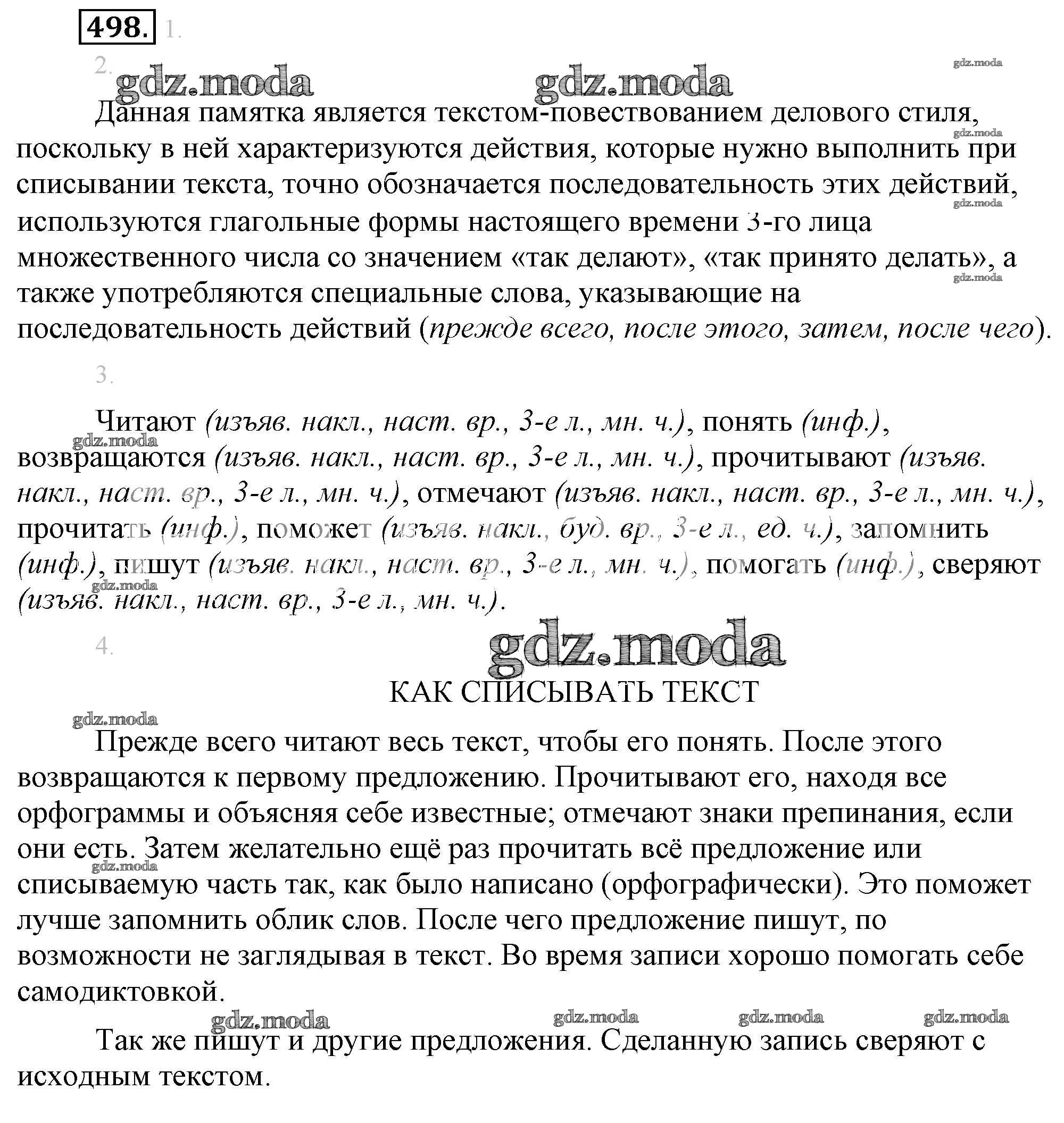 ОТВЕТ на задание № 498 Учебник по Русскому языку 6 класс Разумовская Вертикаль