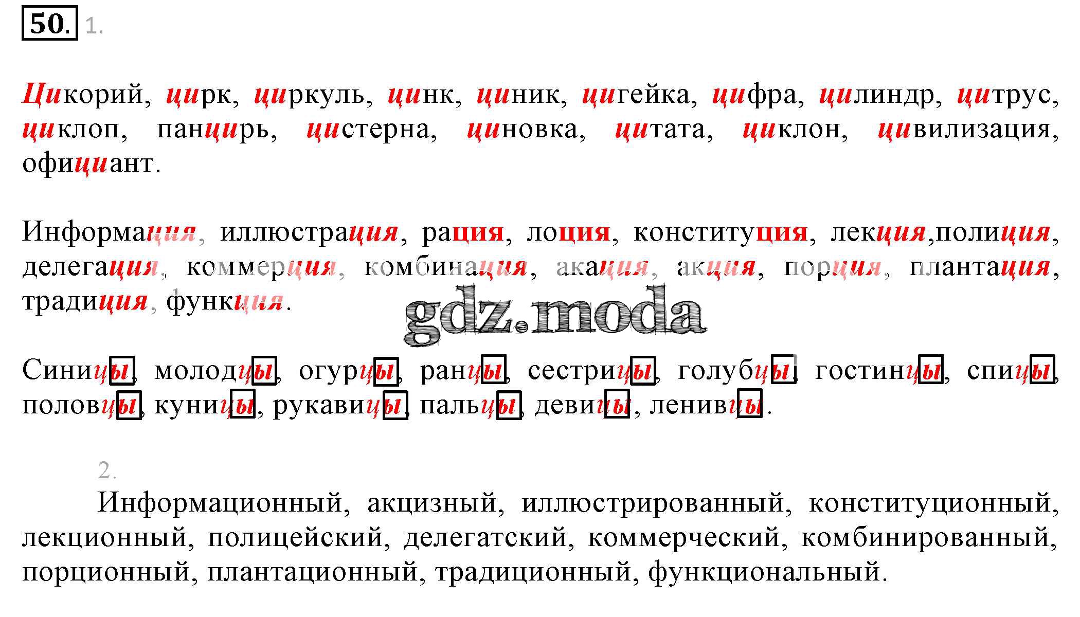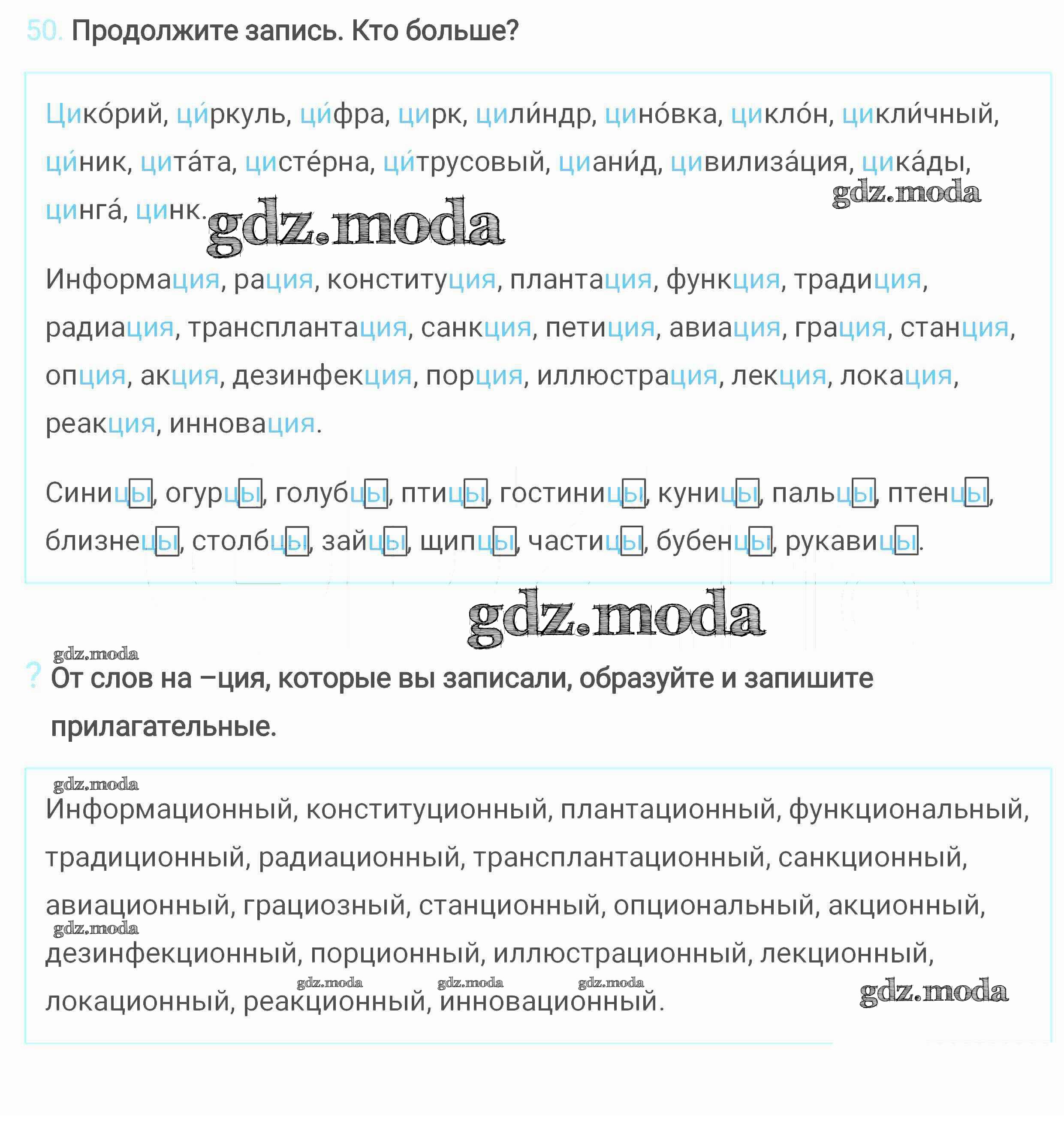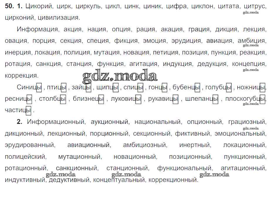 ОТВЕТ на задание № 50 Учебник по Русскому языку 6 класс Разумовская Вертикаль