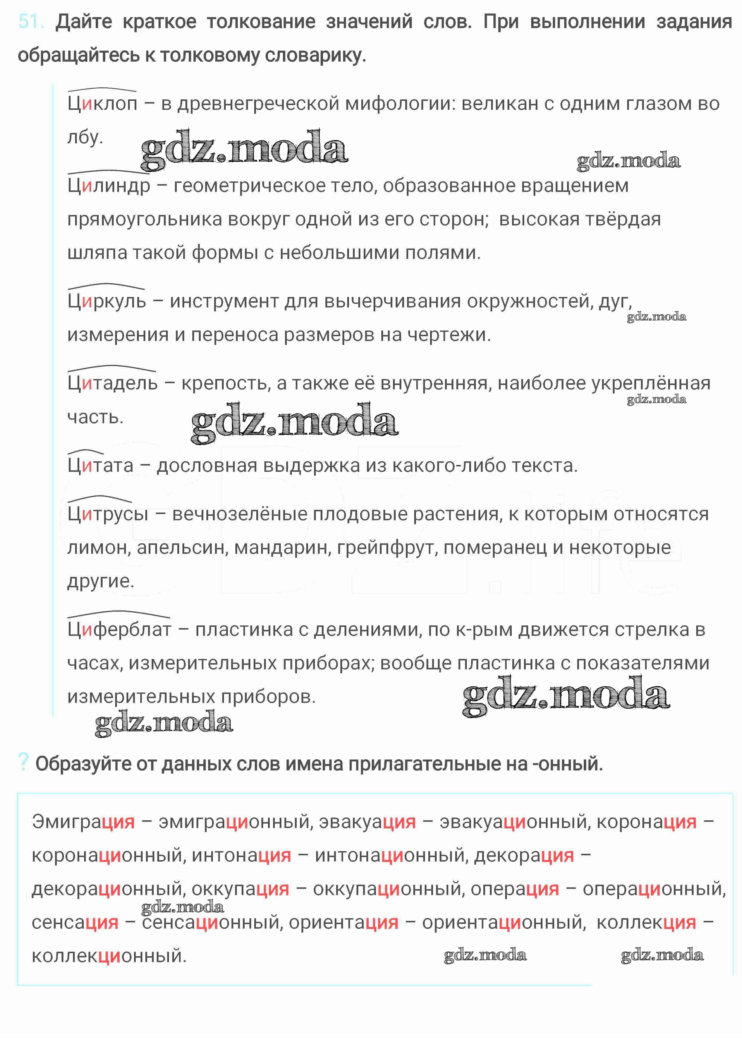 ОТВЕТ на задание № 51 Учебник по Русскому языку 6 класс Разумовская Вертикаль