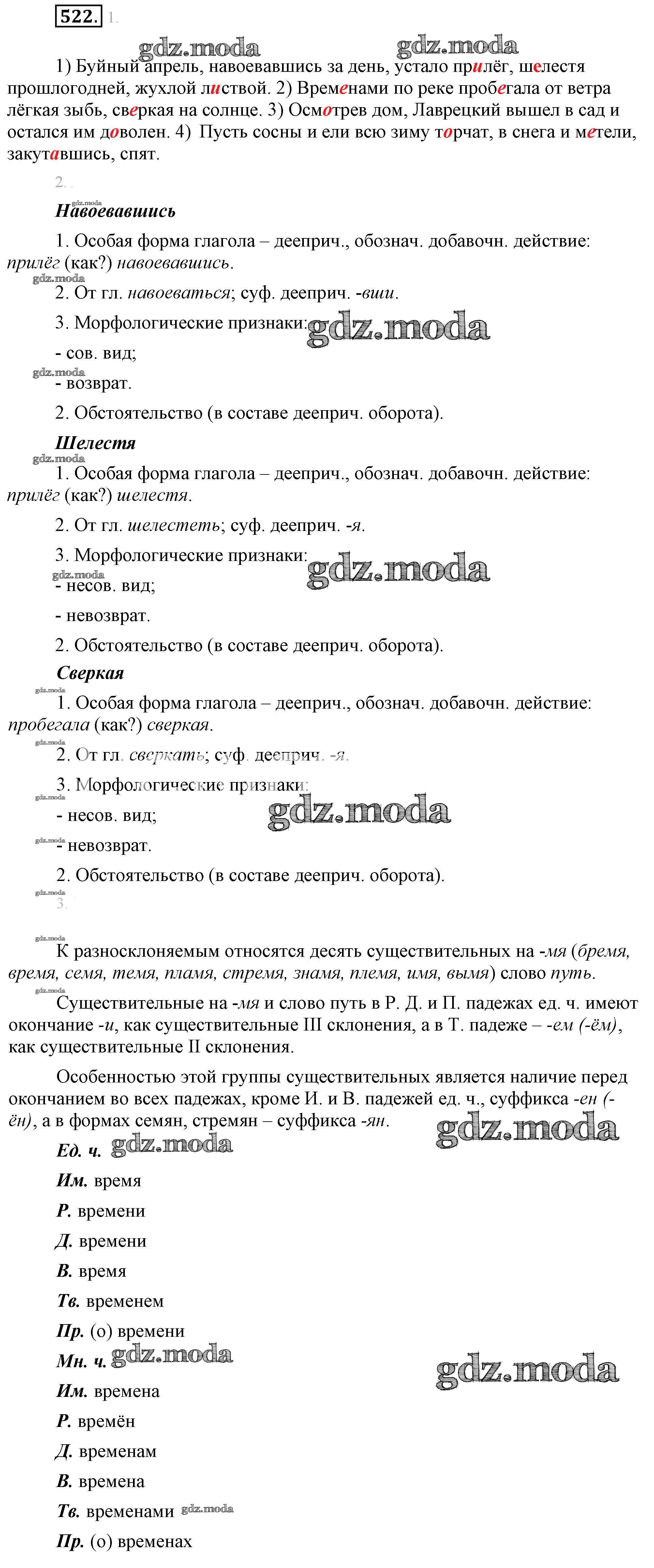 ОТВЕТ на задание № 522 Учебник по Русскому языку 6 класс Разумовская Вертикаль