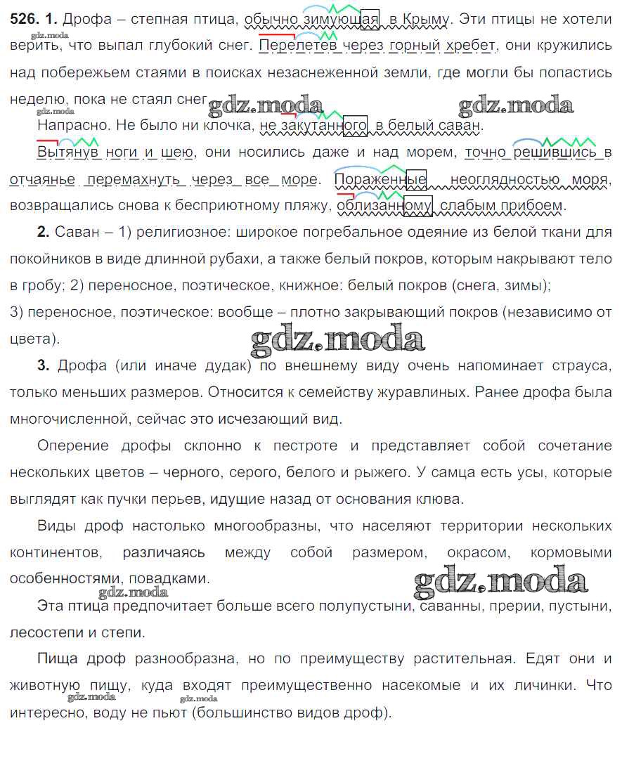 ОТВЕТ на задание № 526 Учебник по Русскому языку 6 класс Разумовская Вертикаль