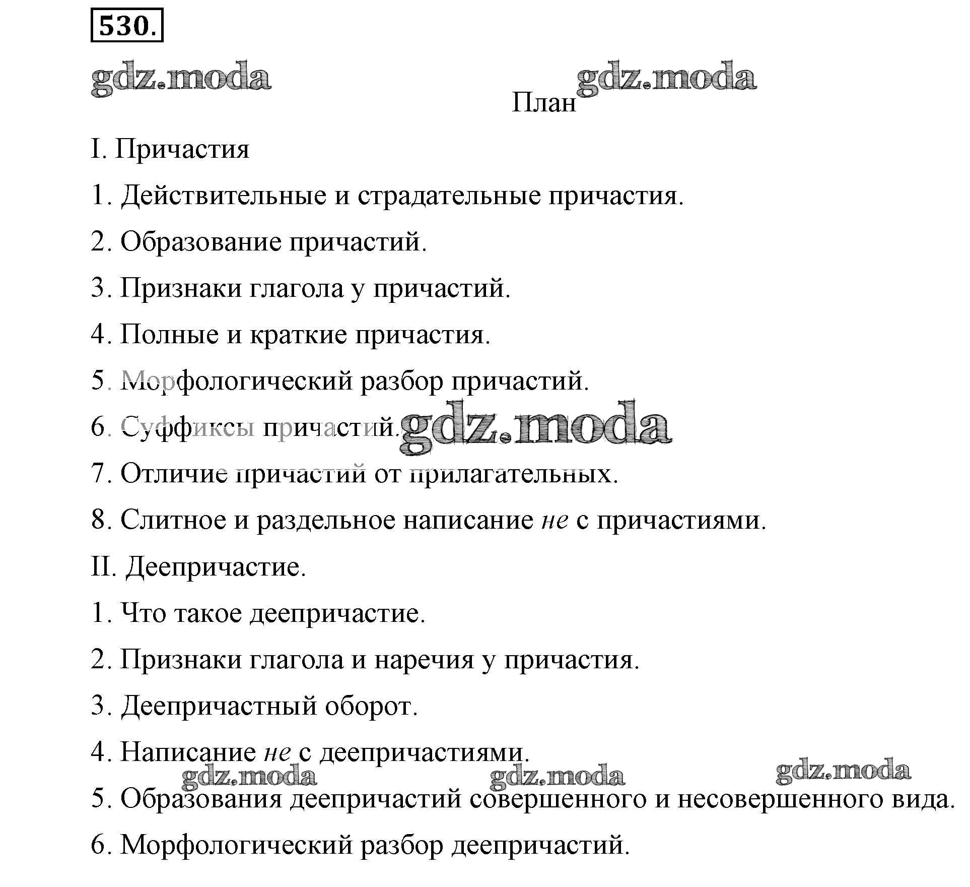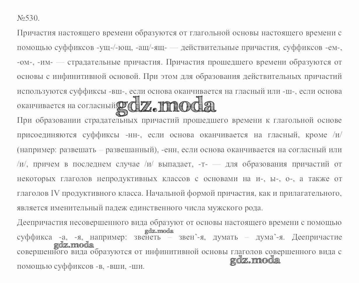 ОТВЕТ на задание № 530 Учебник по Русскому языку 6 класс Разумовская Вертикаль