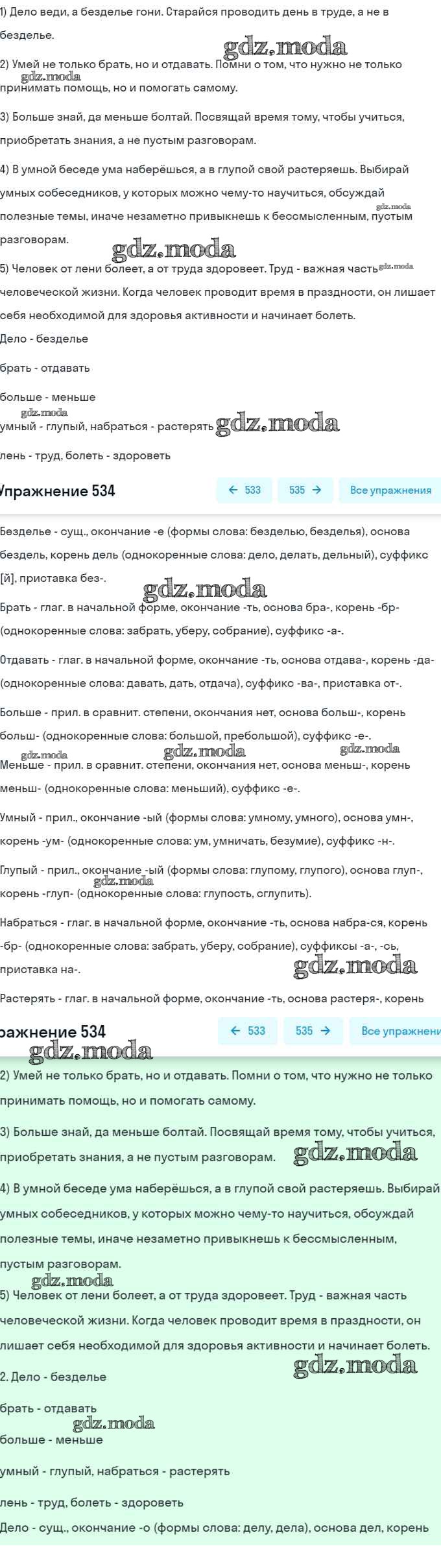 ОТВЕТ на задание № 534 Учебник по Русскому языку 6 класс Разумовская Вертикаль