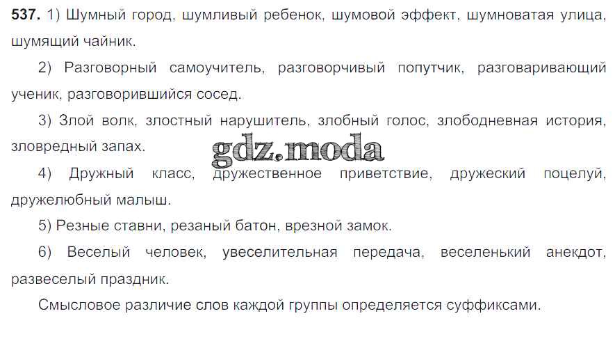 ОТВЕТ на задание № 537 Учебник по Русскому языку 6 класс Разумовская Вертикаль