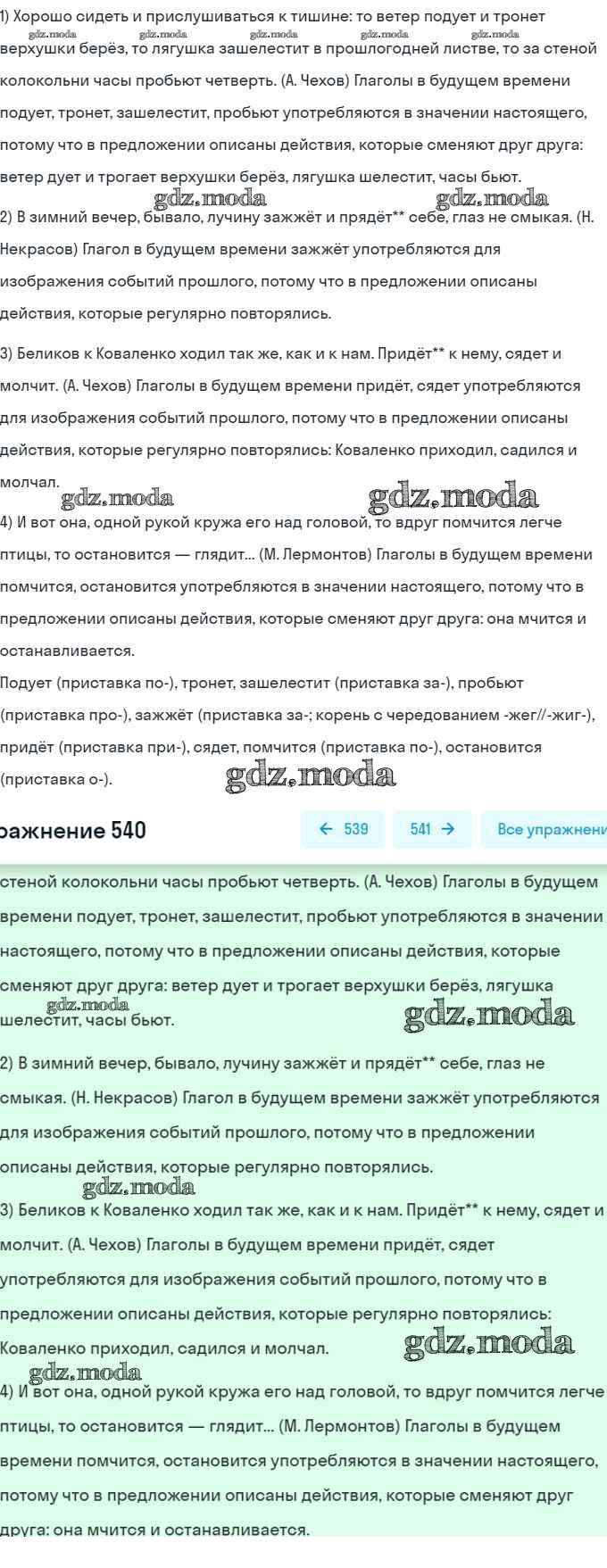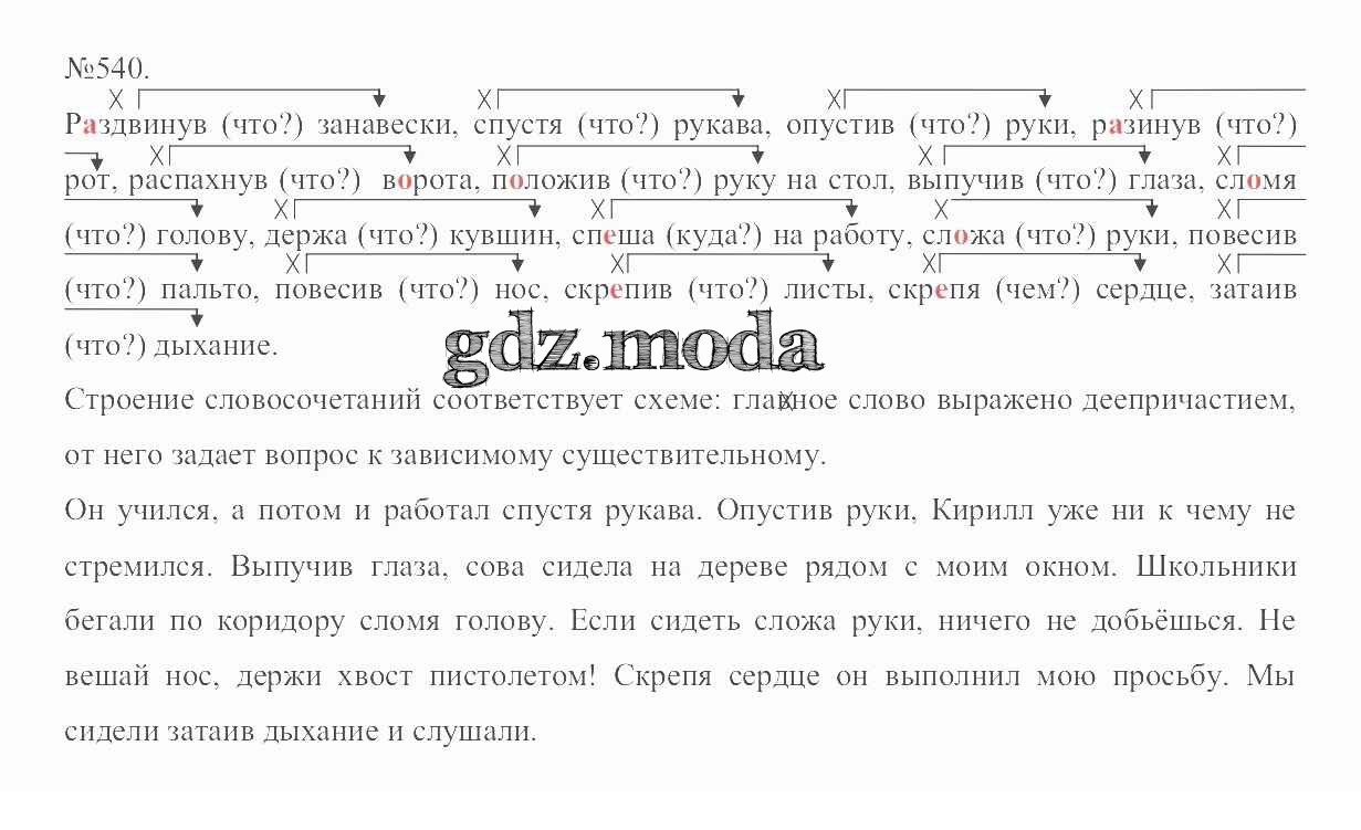 ОТВЕТ на задание № 540 Учебник по Русскому языку 6 класс Разумовская Вертикаль