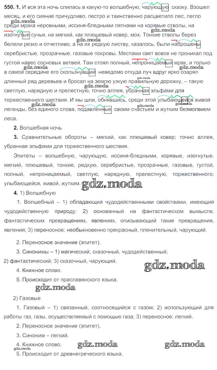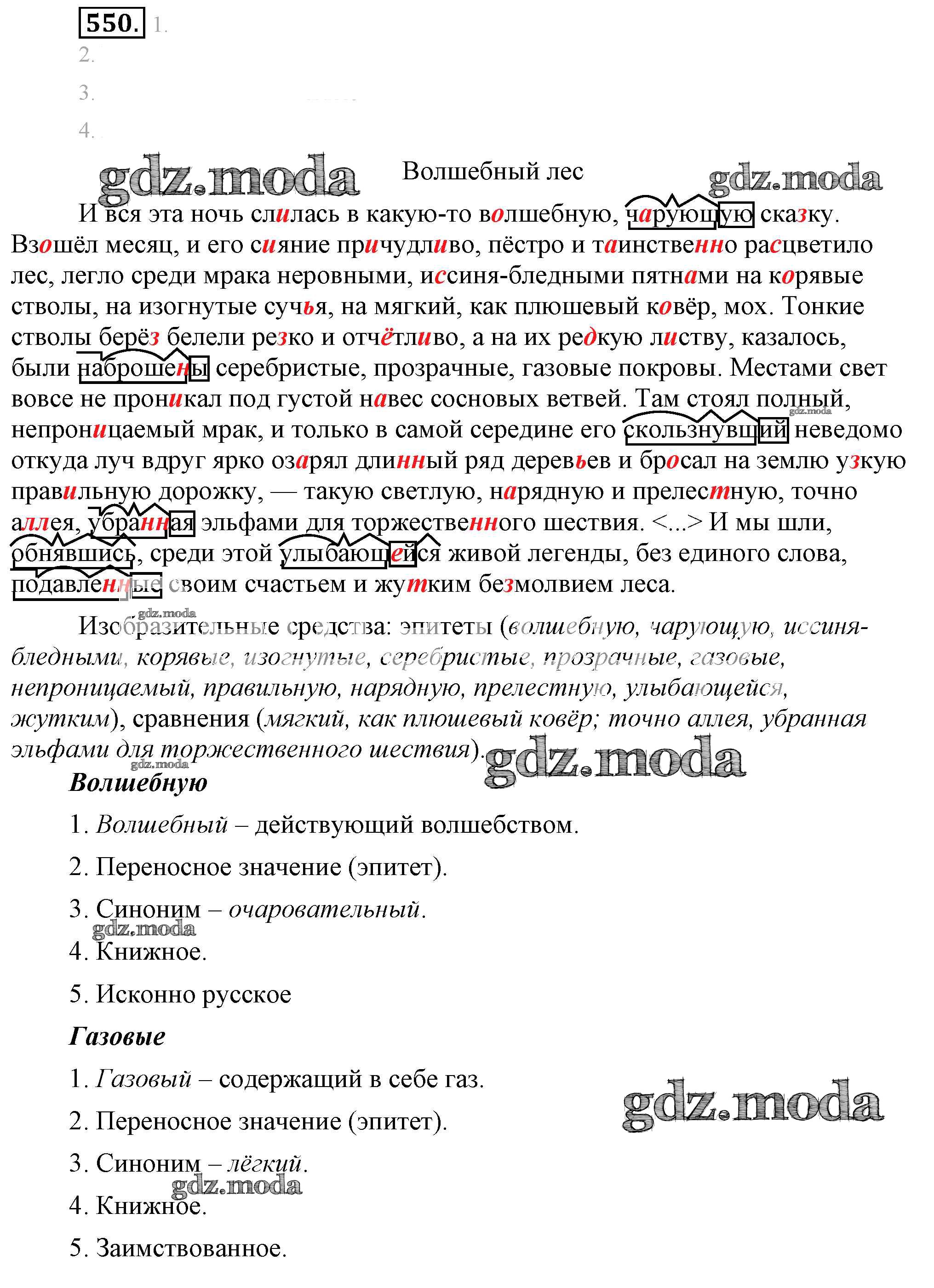 ОТВЕТ на задание № 550 Учебник по Русскому языку 6 класс Разумовская Вертикаль