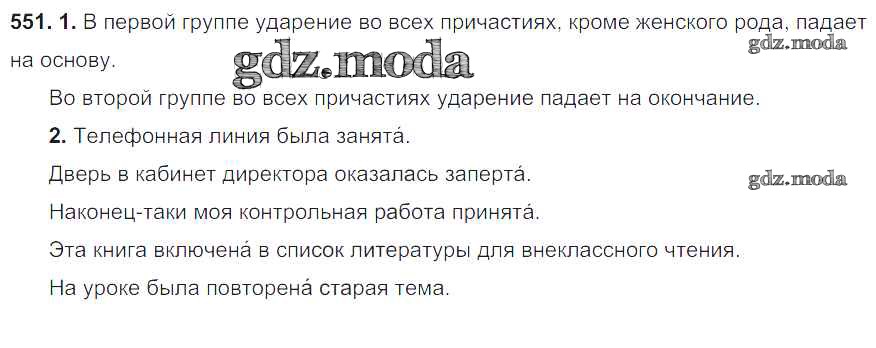 ОТВЕТ на задание № 551 Учебник по Русскому языку 6 класс Разумовская Вертикаль