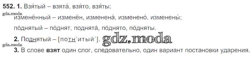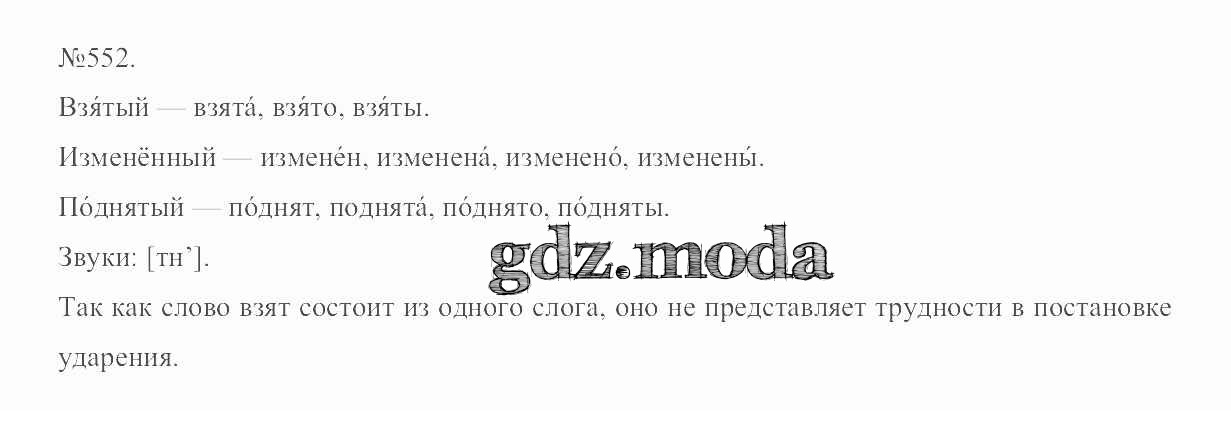 ОТВЕТ на задание № 552 Учебник по Русскому языку 6 класс Разумовская Вертикаль